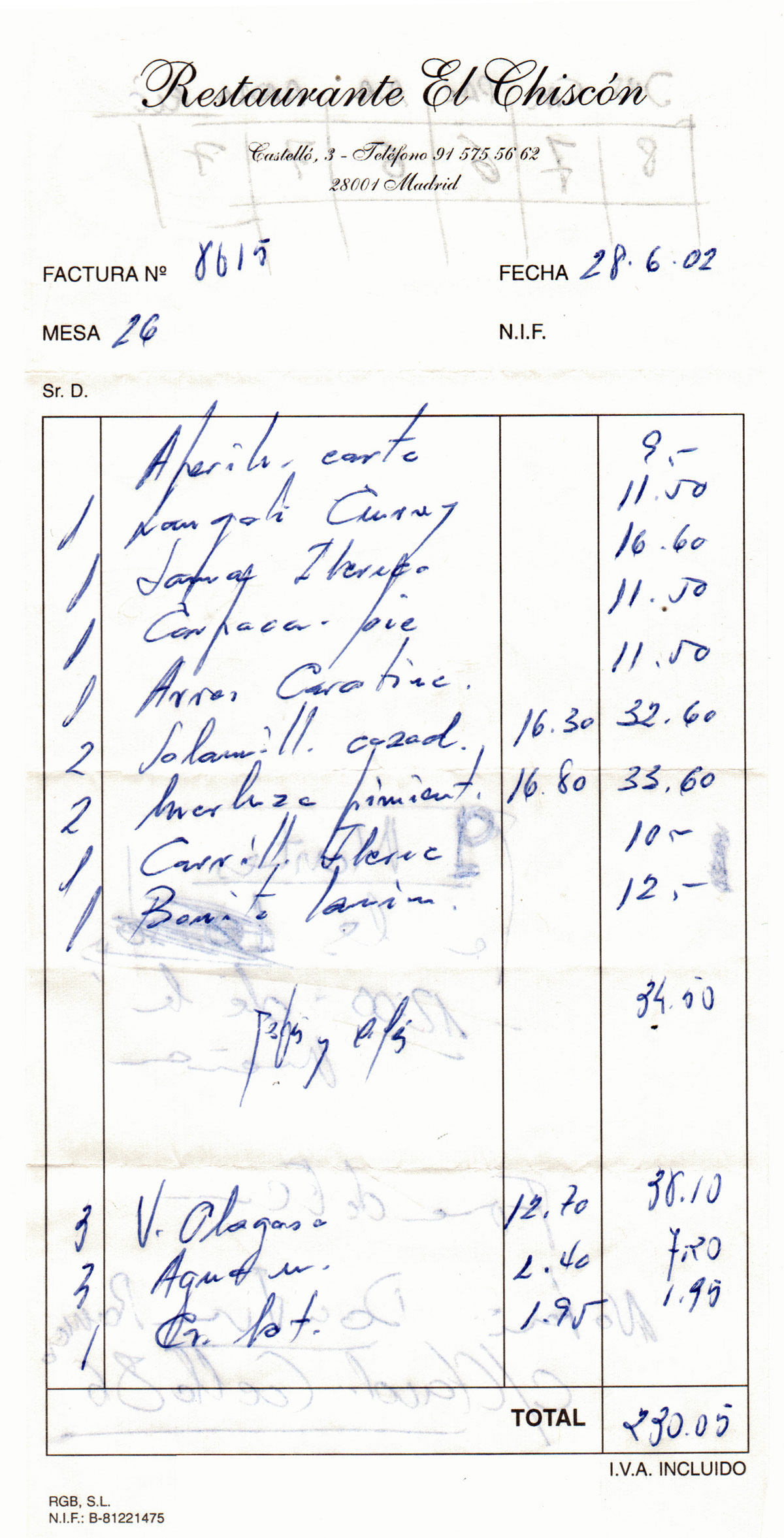 pidieron dos platos, cada uno sale a 16,60 €. |