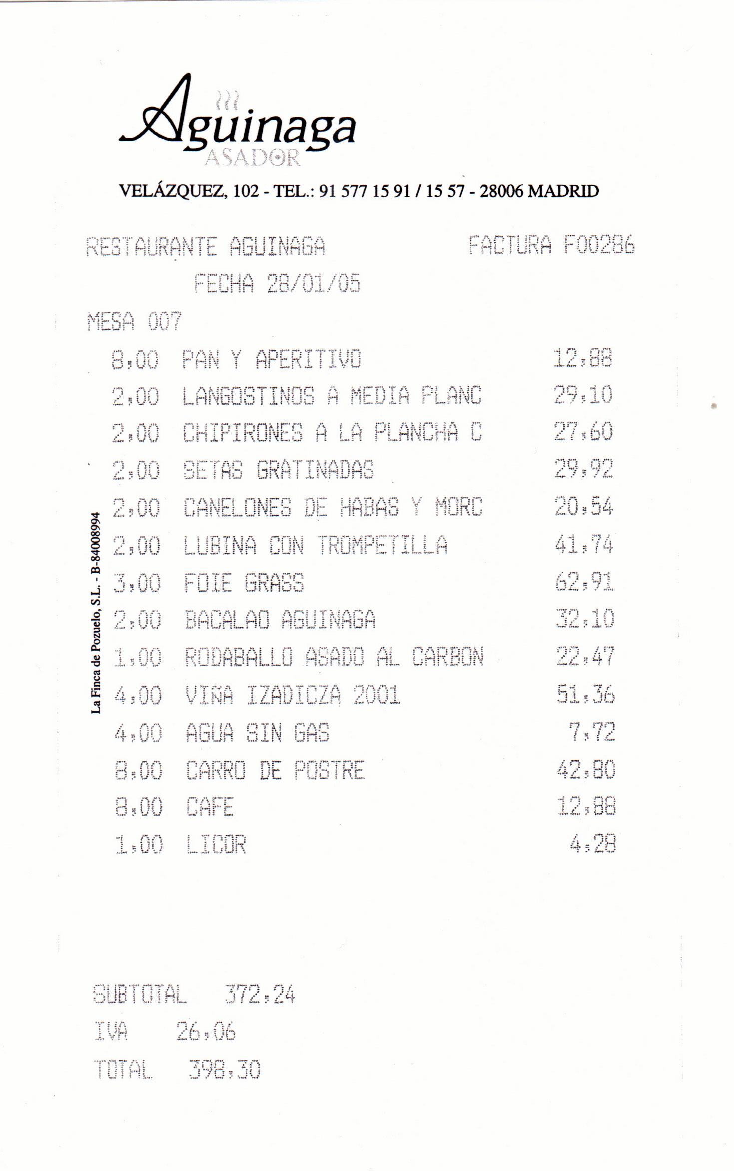 consta que invitaran a chupitos. Se pidió un licor a 4,28 €.