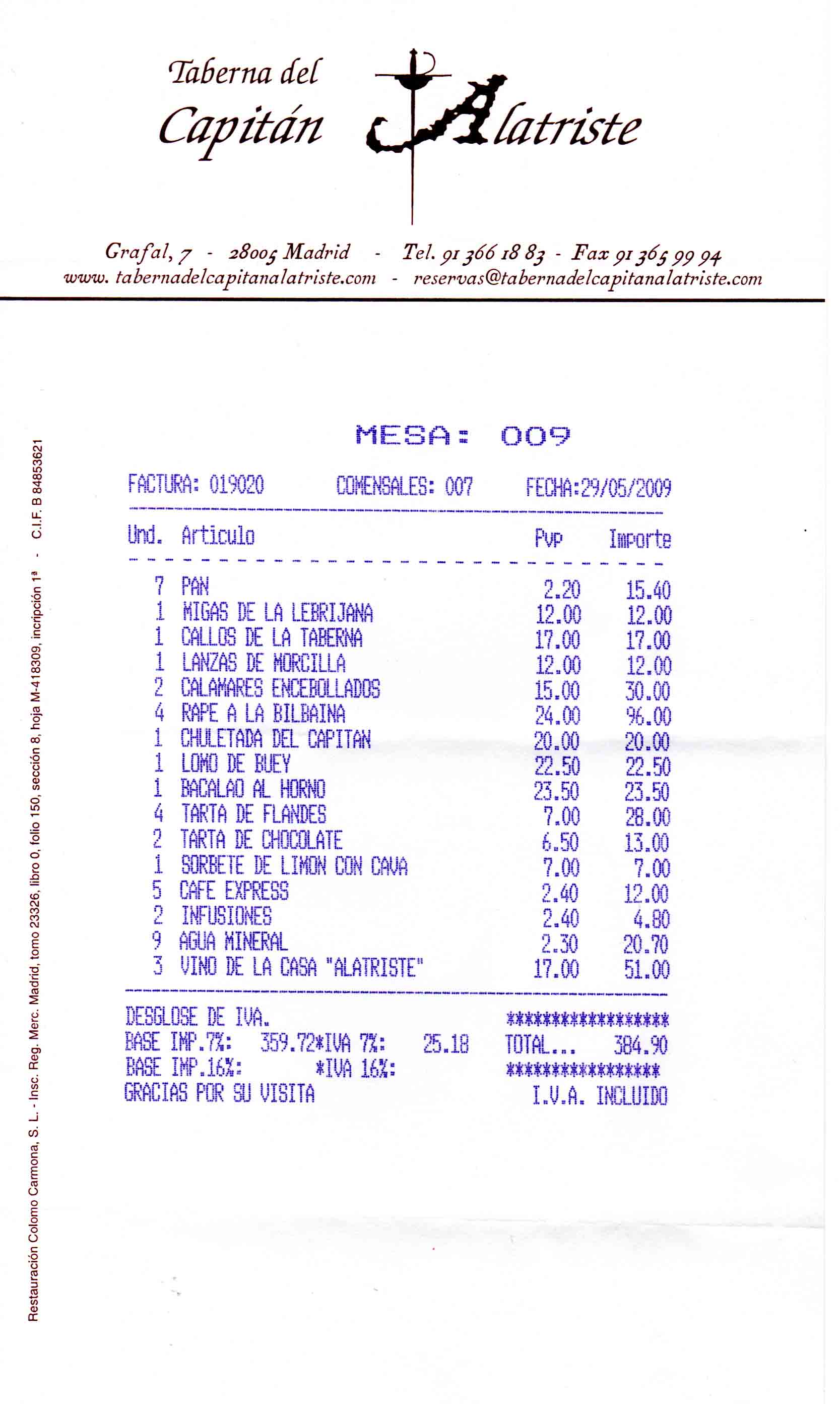 para el restaurante, de Madrid, 17 €).