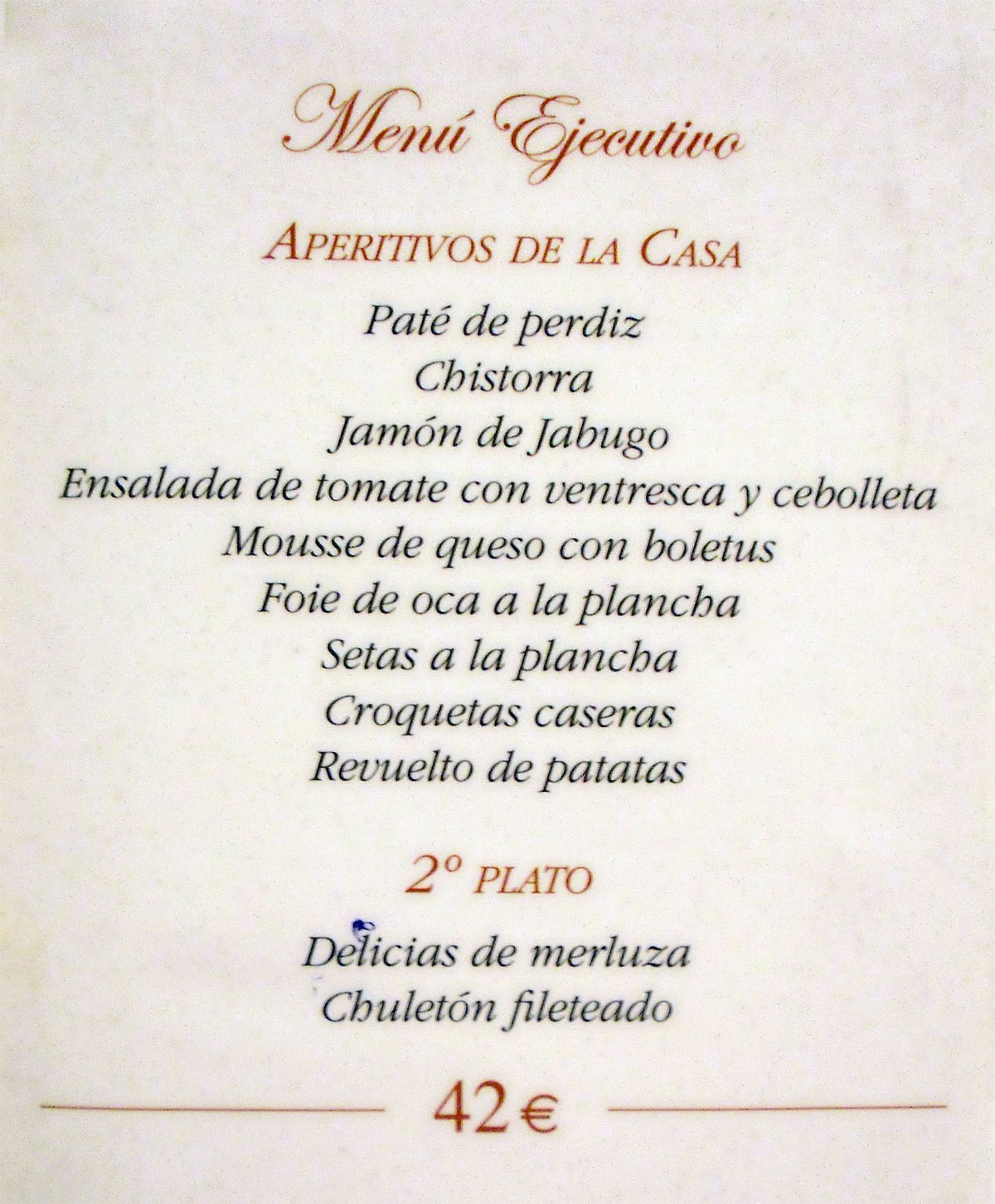 precio del menú ( 42 € ) no incluye el I.V.A.