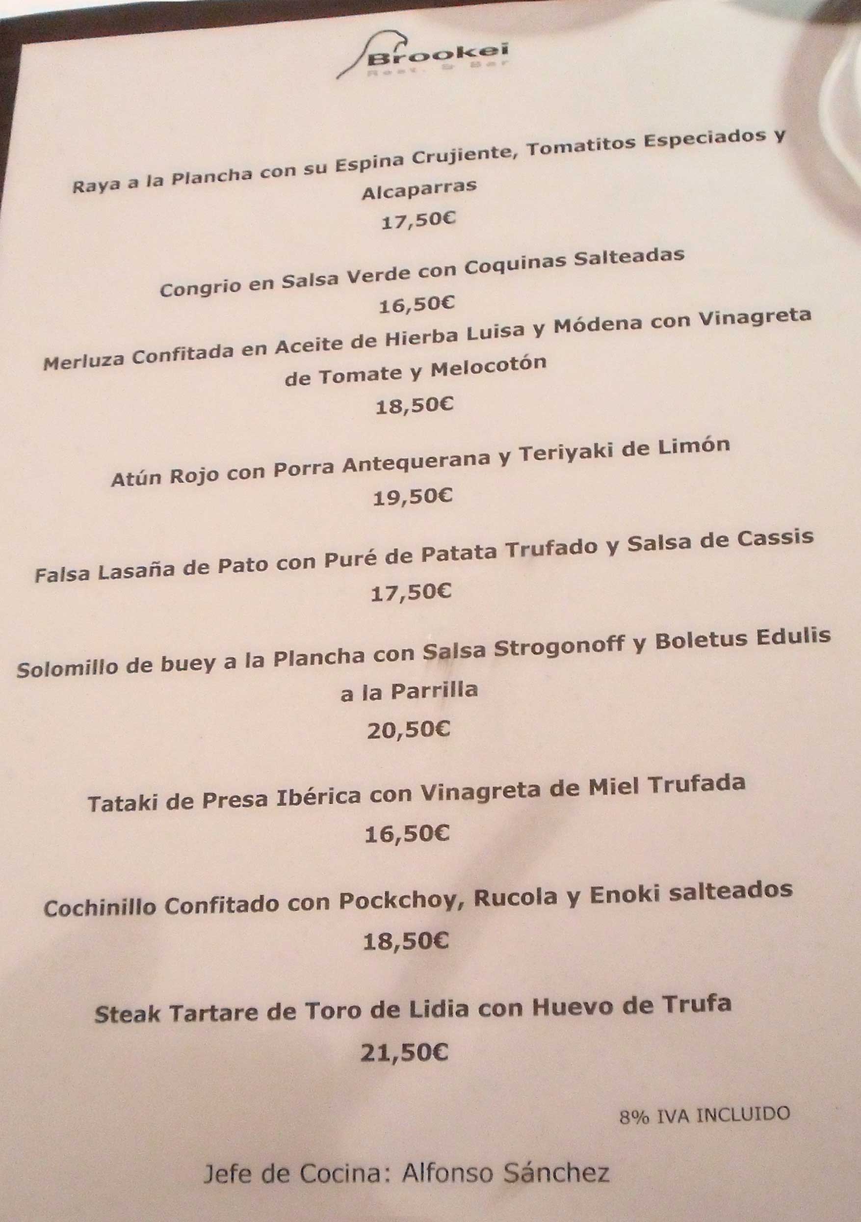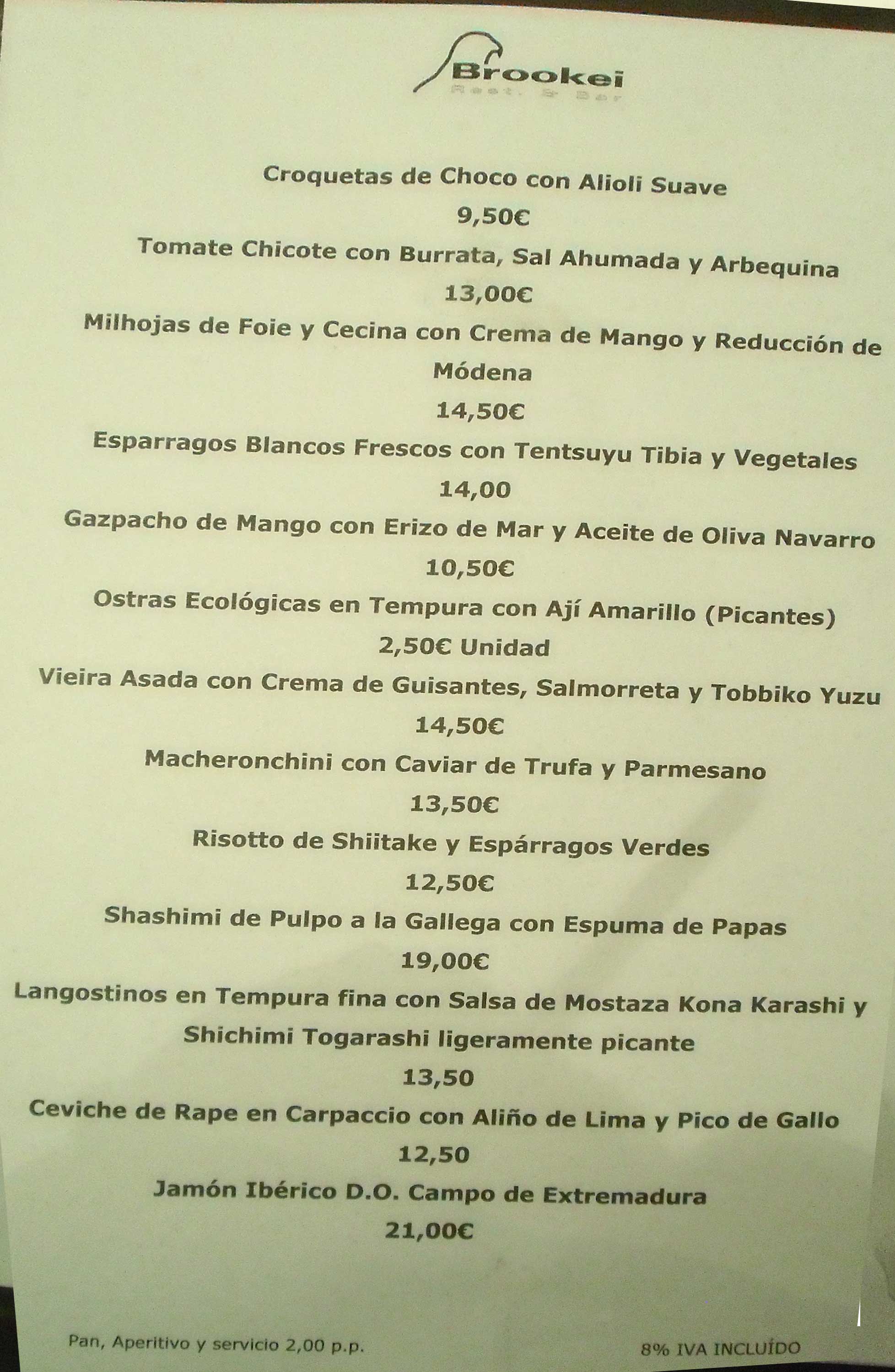 I.V.A se incluye en los precios de la carta y de la factura.