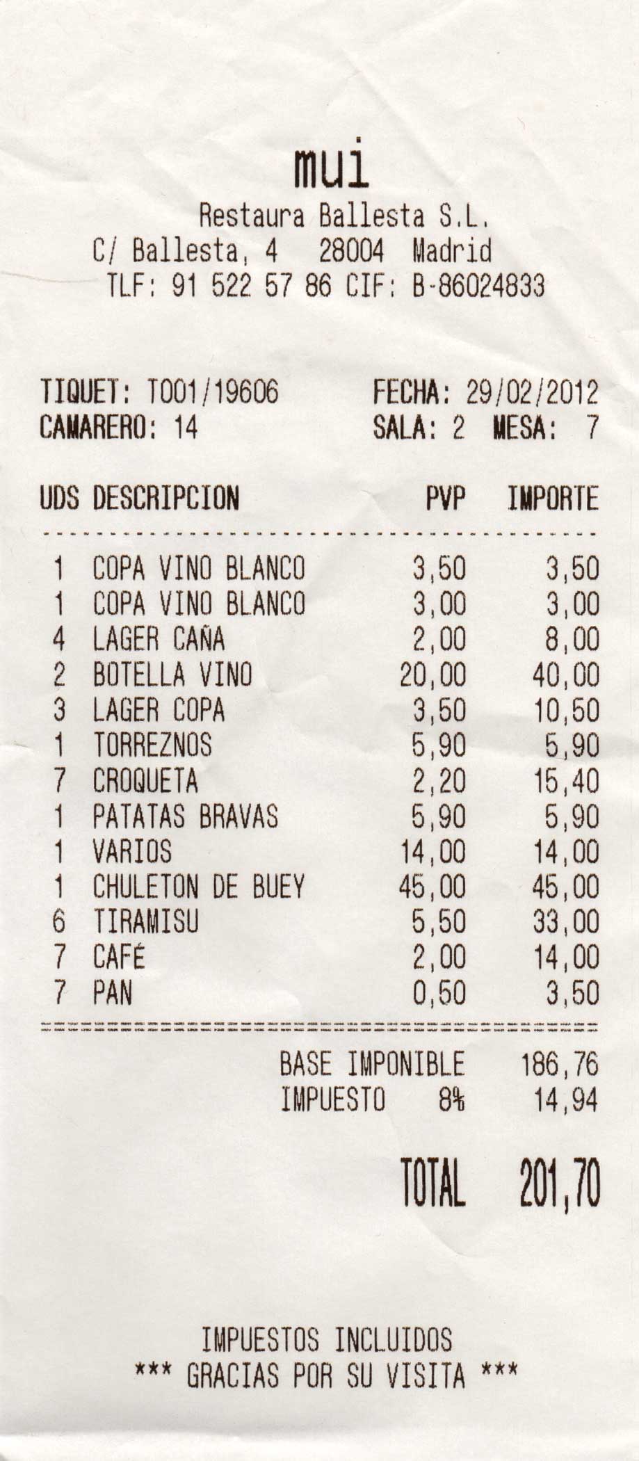 pidió una ración a 14,00 €.