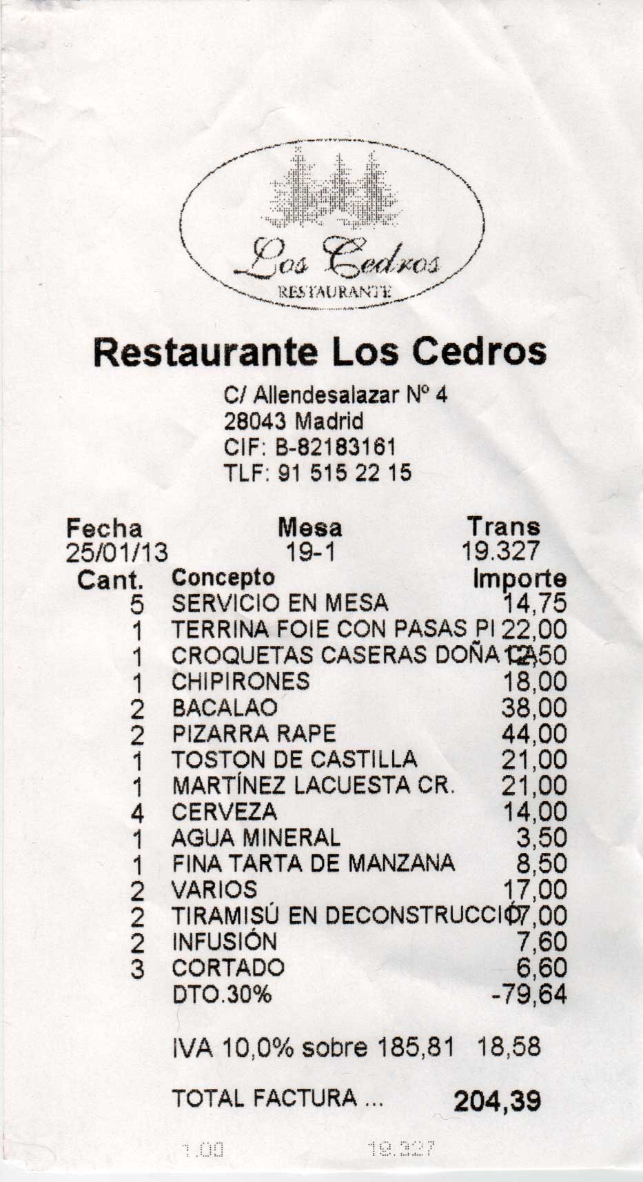 sin esta reserva la cena, sin cañas, ascendería a 276,60 €,