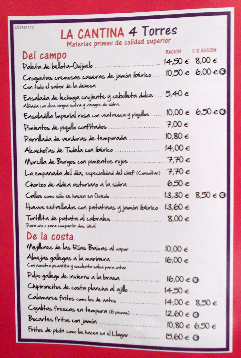 no tenían platos de la carta como cochinillo o costillar.