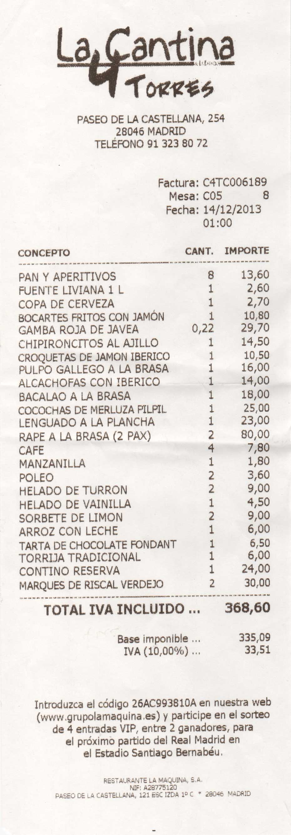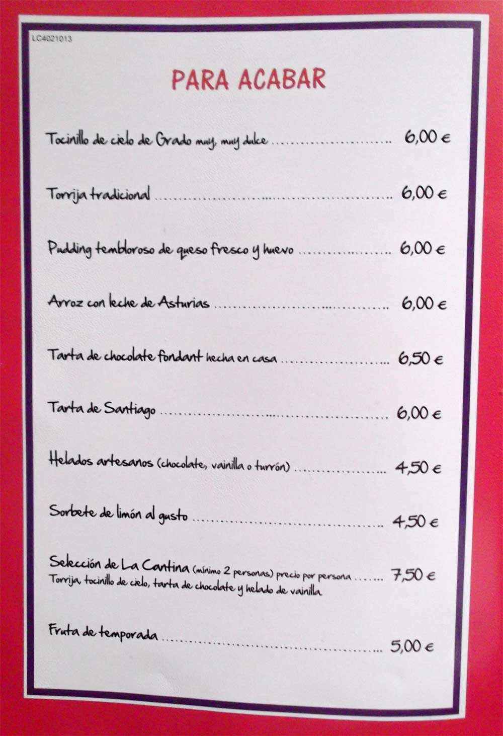 buena. Se pidió una a 6,50 €.