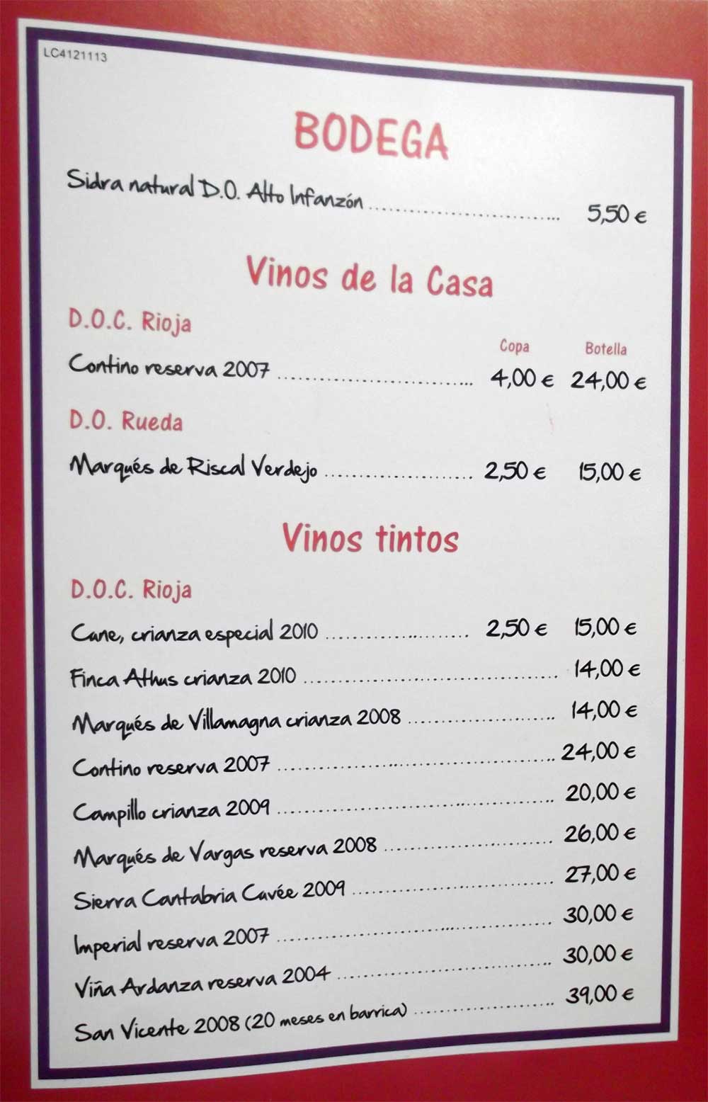 estaba bueno. Nos bebimos una botella, a 24,00 €. El precio aproximado