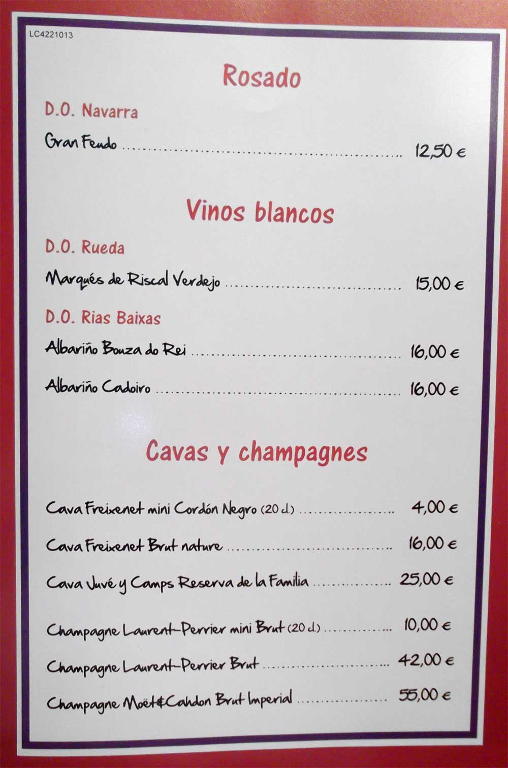Máquina. Muy bueno fresquito. Nos bebimos dos botellas a 15,00 € cada