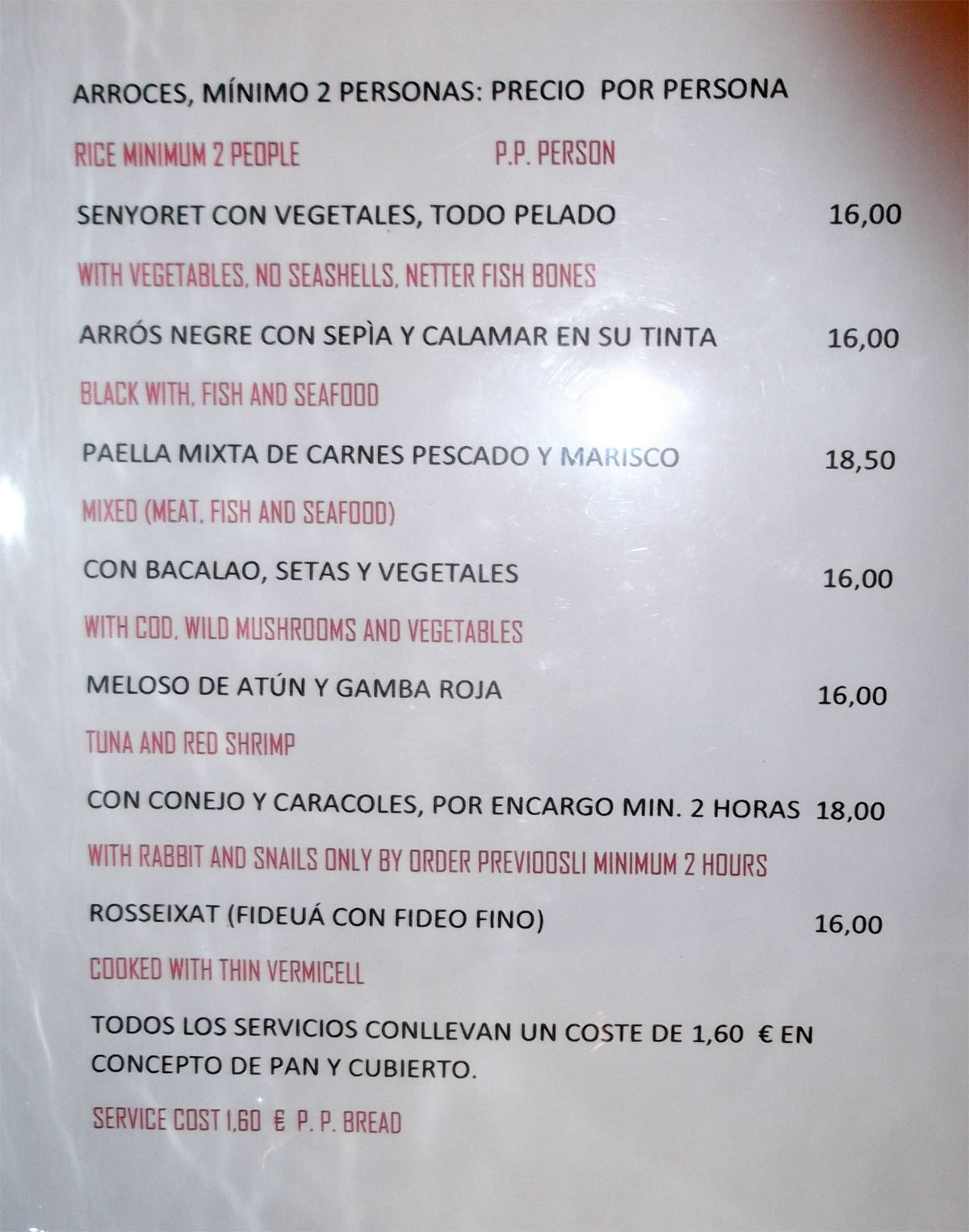figuraba en mi carta que ni en la web. Se presenta