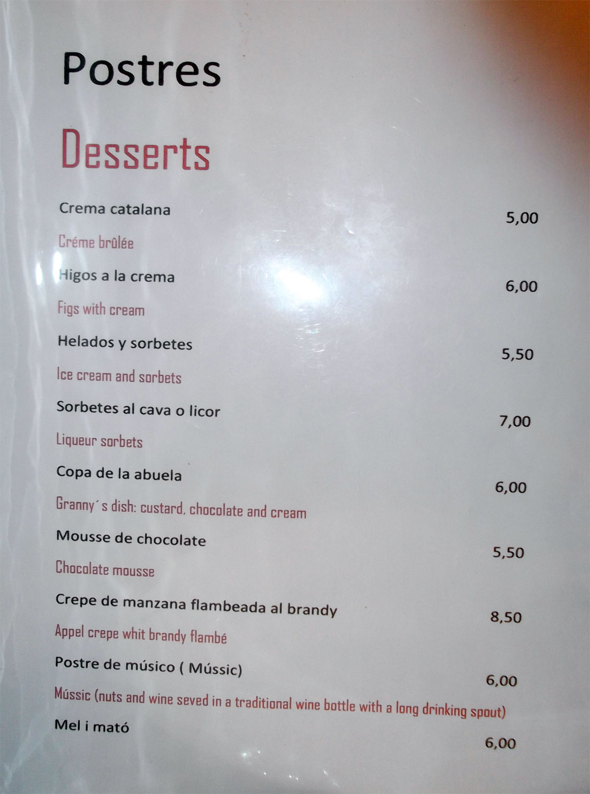 Buena. Se pidieron dos postres a 5,00 € cada uno.