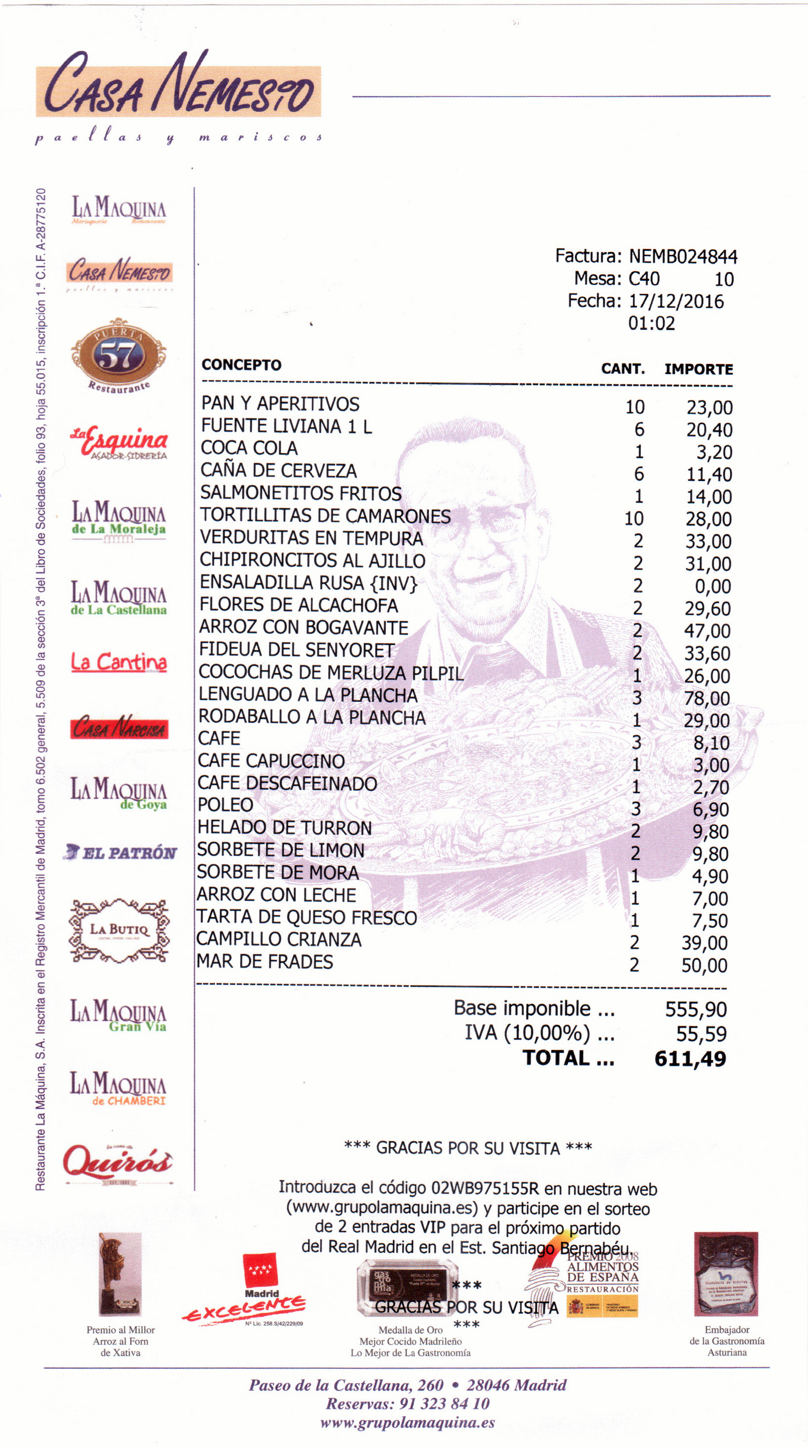 por los restaurantes del grupo La Máquina como vino de la casa