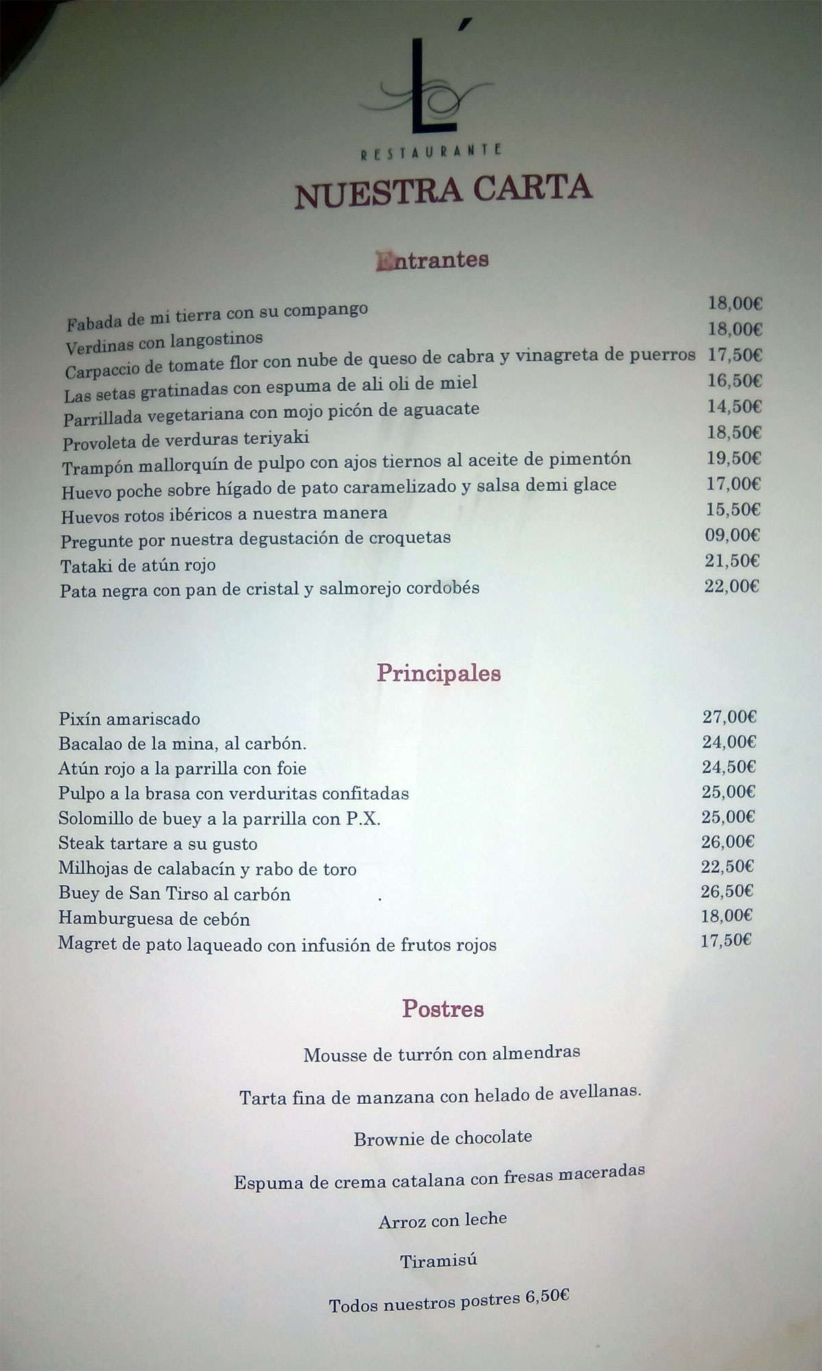 postres para así poder probar más. Pensamos que pondría,