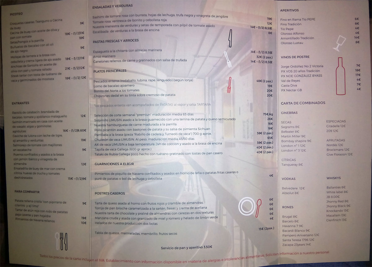 con el I.V.A incluido. Hay errores en el precio del cubierto.