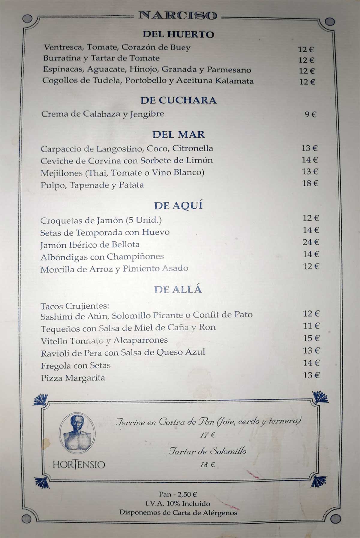 y no tienen fotos. Los precios de la carta en la web con respecto
