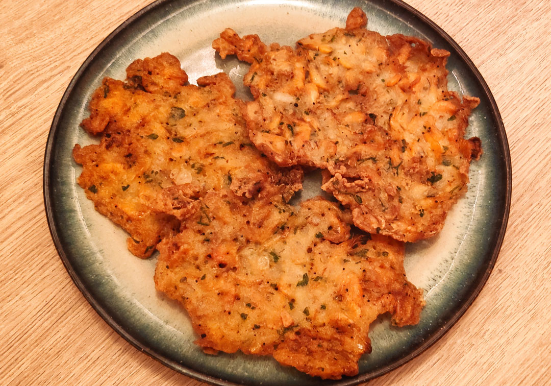 en un plato llano, en unas dieciséis porciones, rebozadas