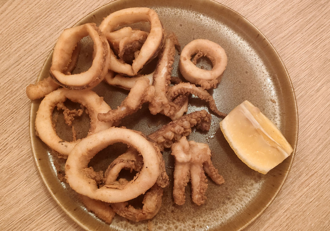 típico plato andaluz. Son anillas y patas de calamar enharinados y