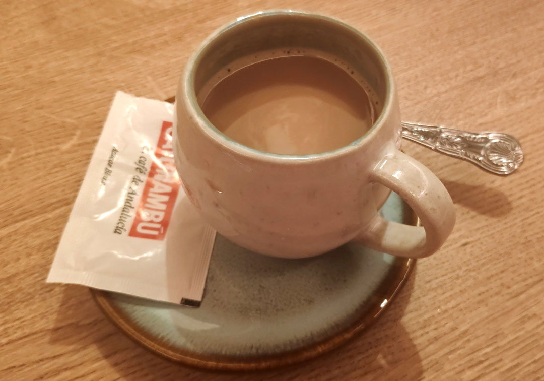 un cortado normal y dos tés, de menta y verde. Cada bebida la cobran a