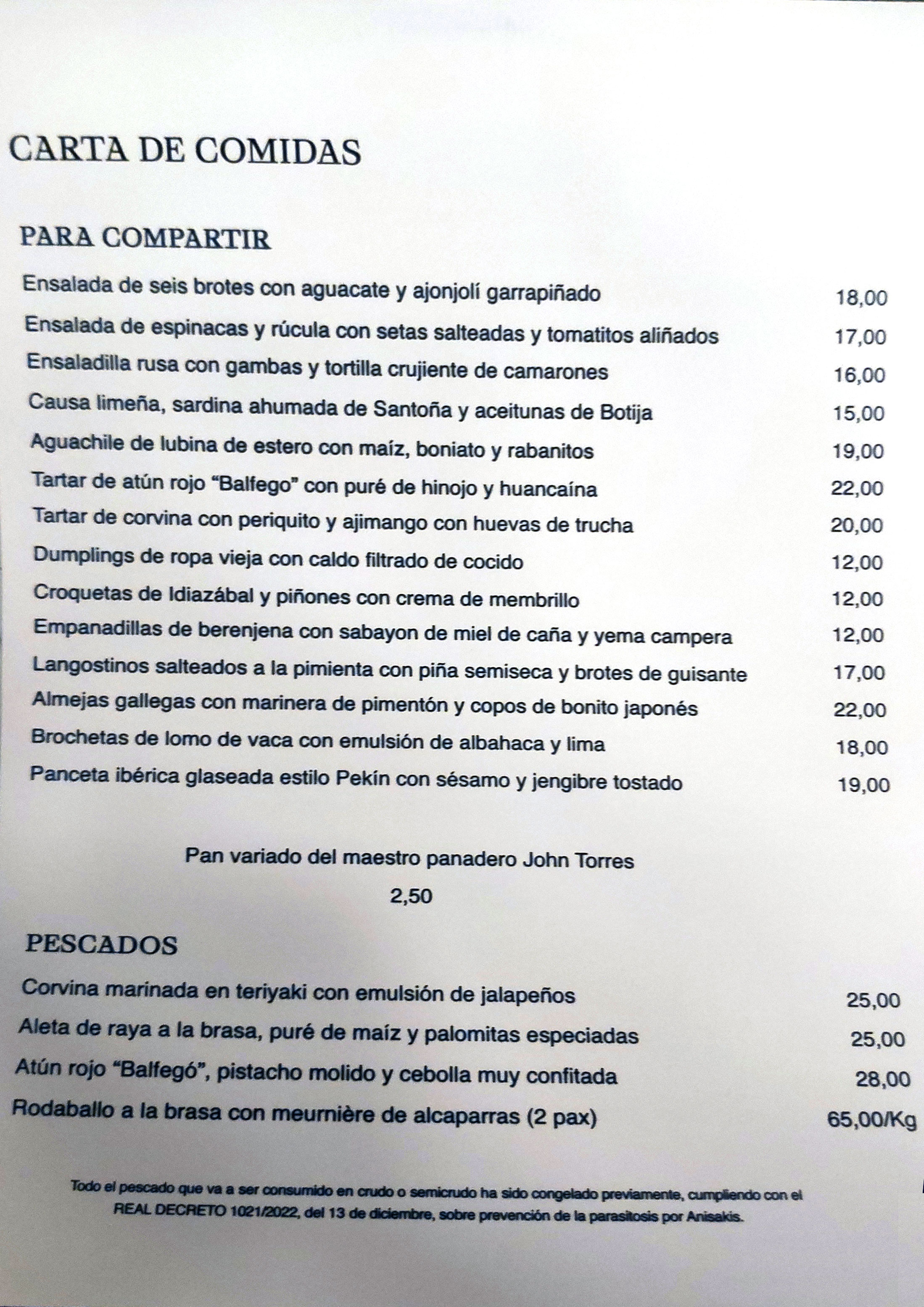 ración para dos a 65,00 €/kg. El pescado que nos