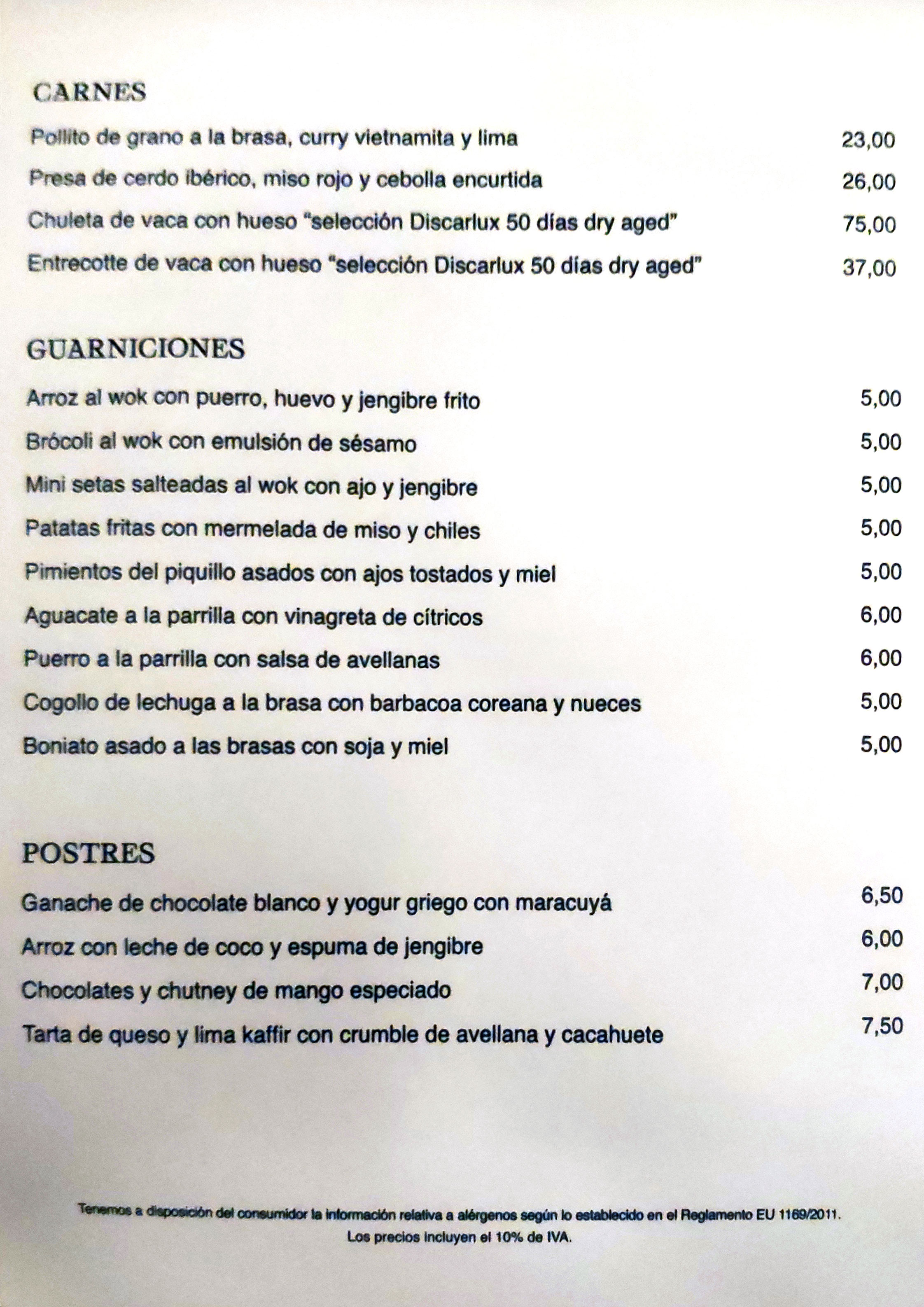 La carta y la factura: Los precios de la carta coinciden