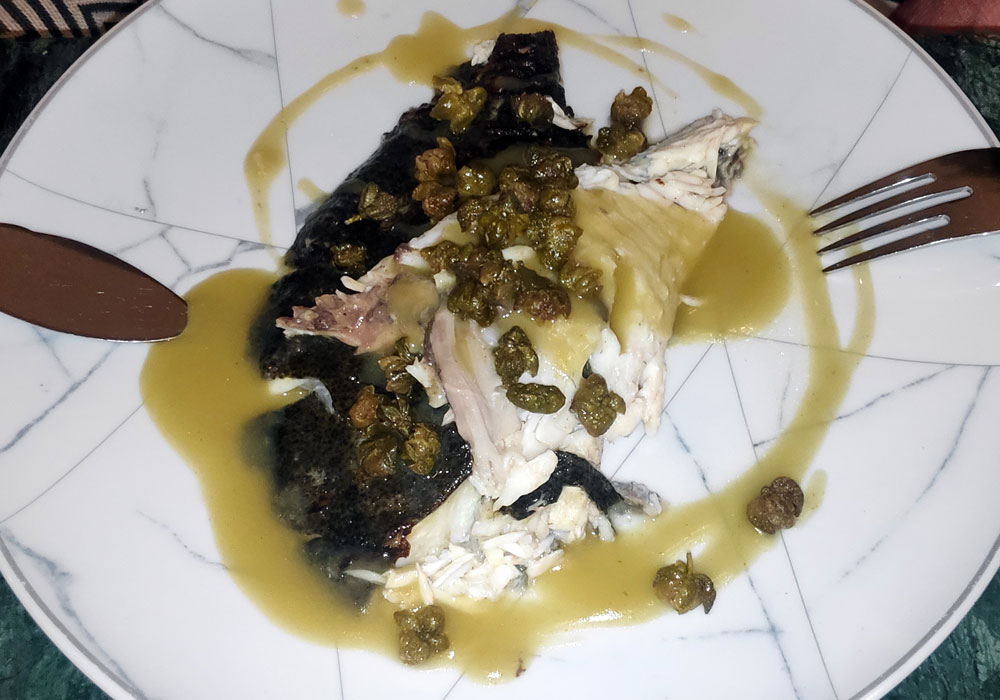 y alcaparras en un plato aparte. Estaba bueno y suficiente. Se pidió una