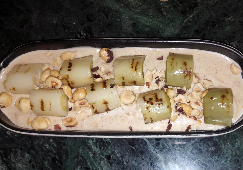 los segundos platos. El puerro está cortado en ocho porciones que están