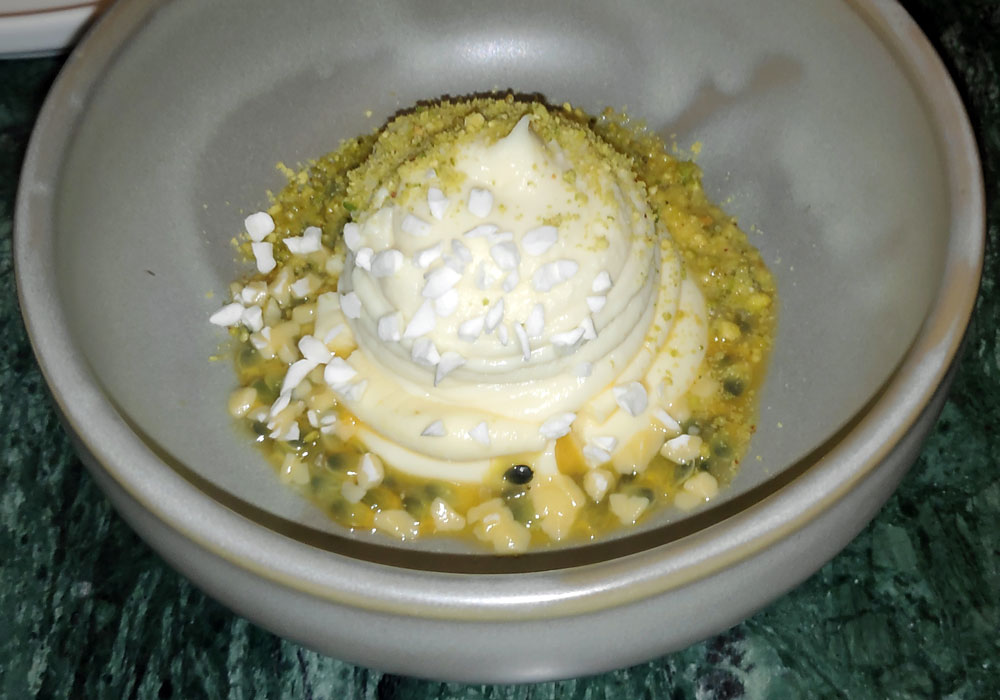 sirven en un bol de postre. En el fondo el maracuyá cortado