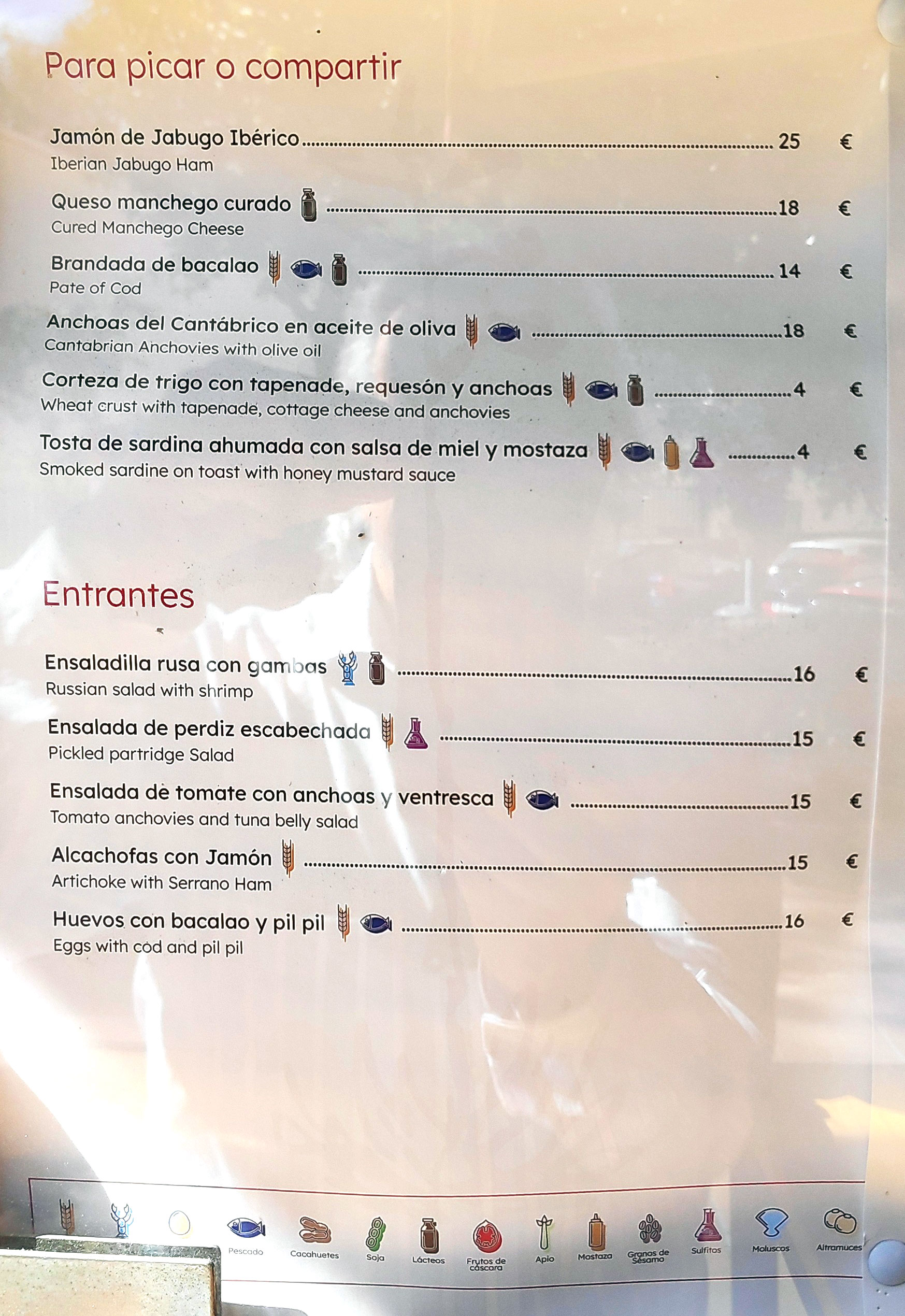 precios pero coincide con la que hay a la entrada del restaurante. La