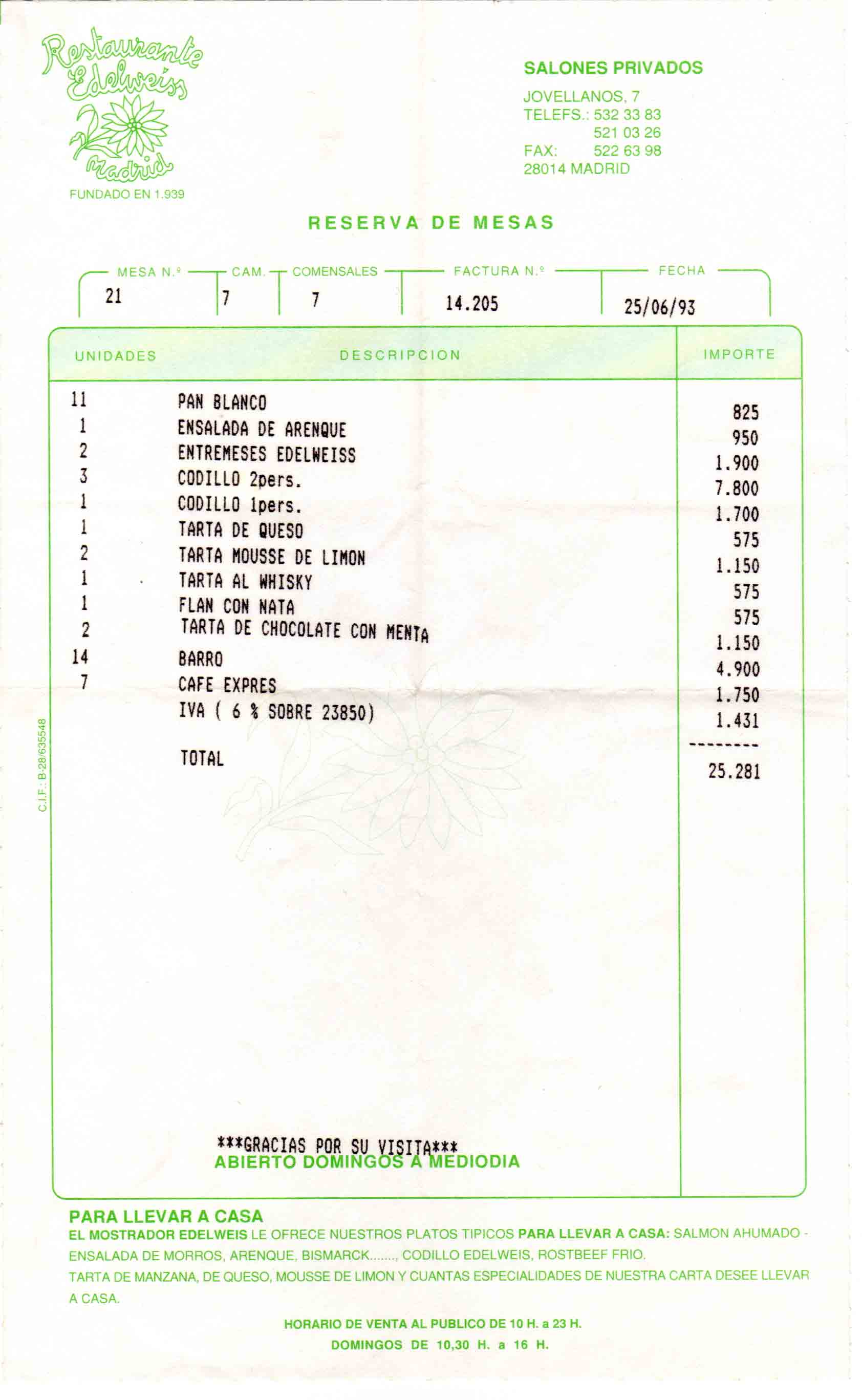 nombre propio: EDELWEISS. Su situación, en pleno centro de Madrid,