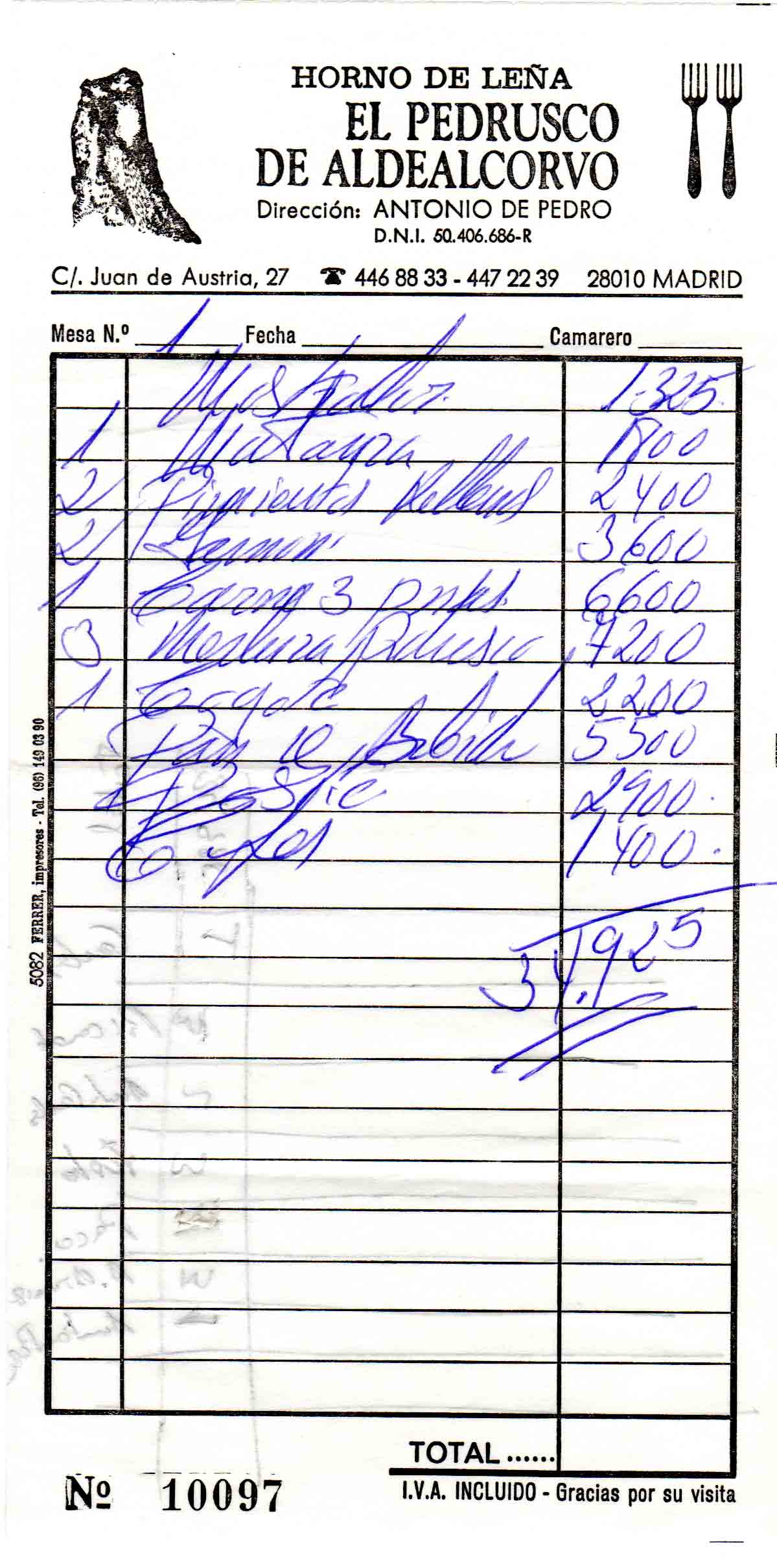 Primitiva en el barrio de Cuatro Caminos, sirviendo comidas y vinos. Ahí fue