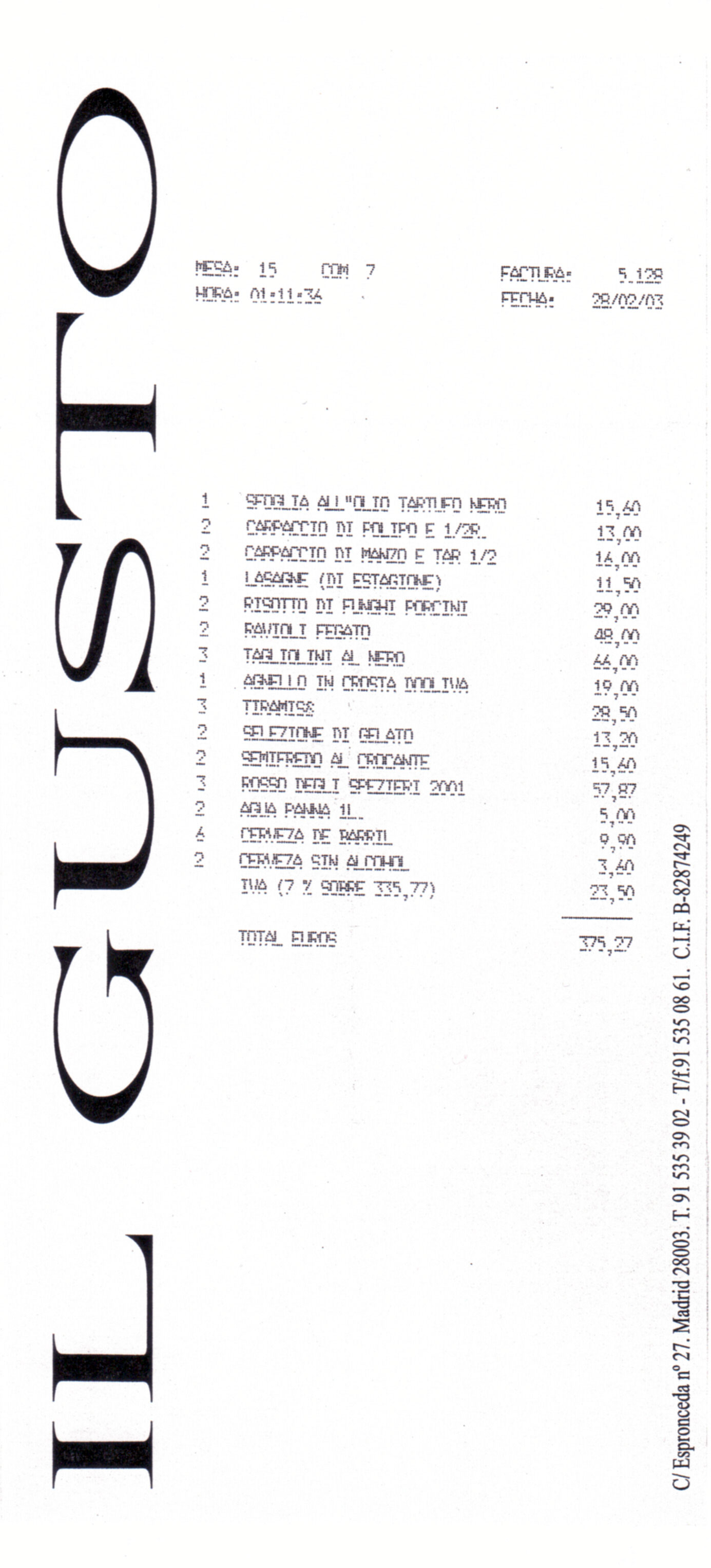 Tiramisú: Se pidieron tres a 10,17 € la unidad.