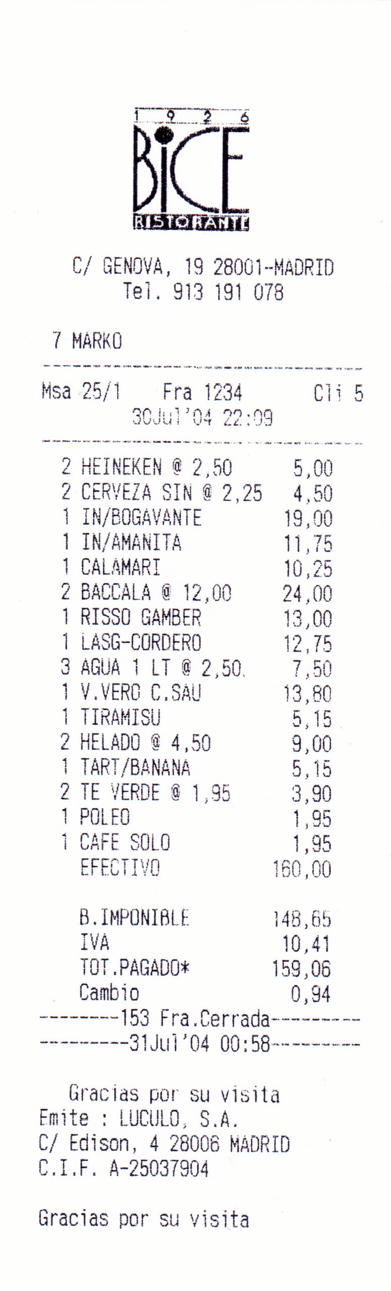 Fecha: 30 de julio de 2004 CENA: