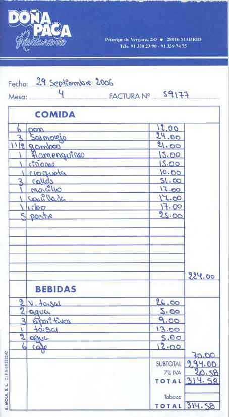 La carta y la factura: En ninguna de las dos los precios incluyen el I.V.A.