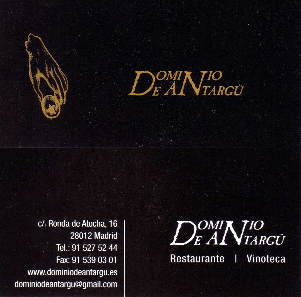 "DOMINIO DE ANTARGÜ, es una vinoteca - restaurante ubicado en pleno centro de Madrid; donde podrán degustar una cocina de mercado. Disponemos de menús degustación para grupos ó empresas, menú ejecutivo y menús maridaje."
