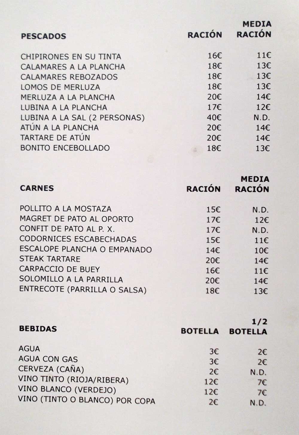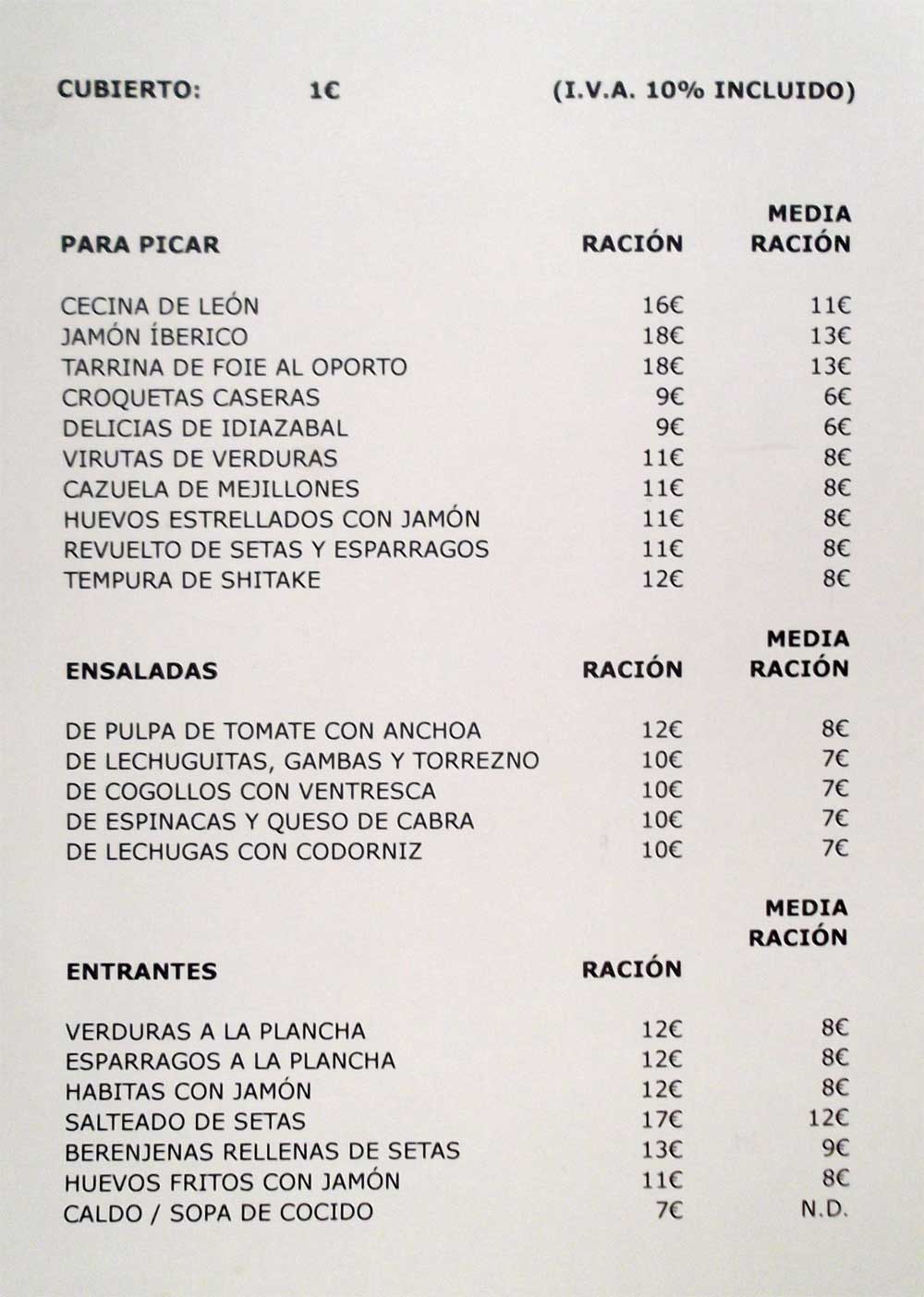 En realidad pusieron dos medias raciones a 8,00 € cada una.