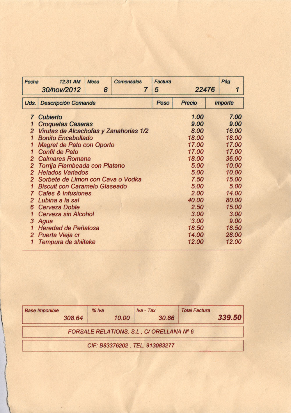 Se pidieron dos a 7,50 € cada