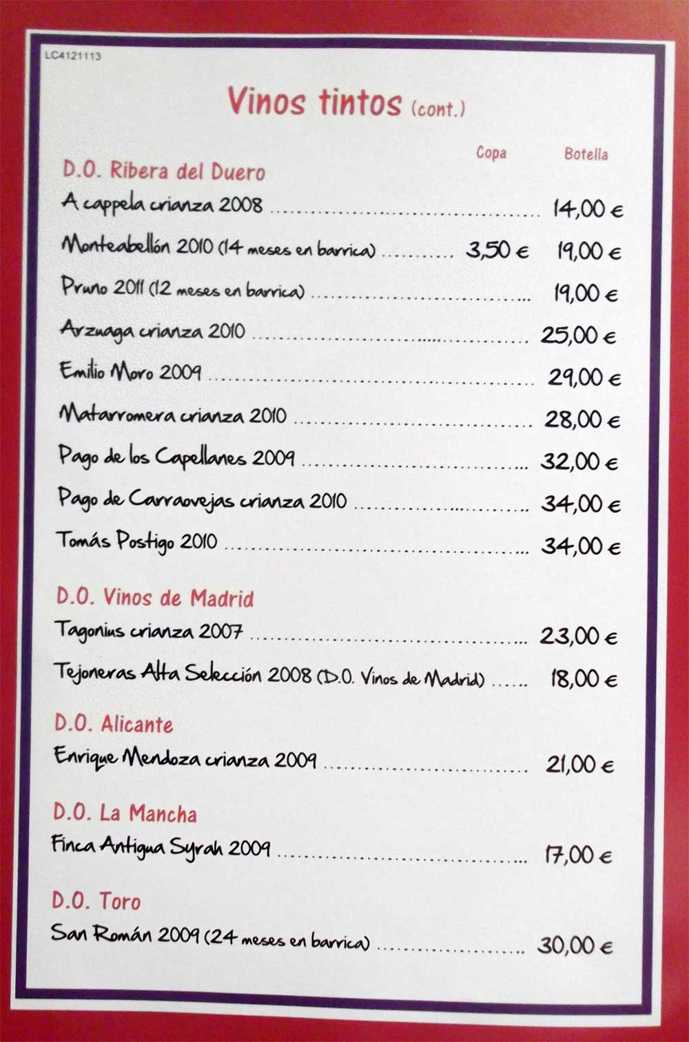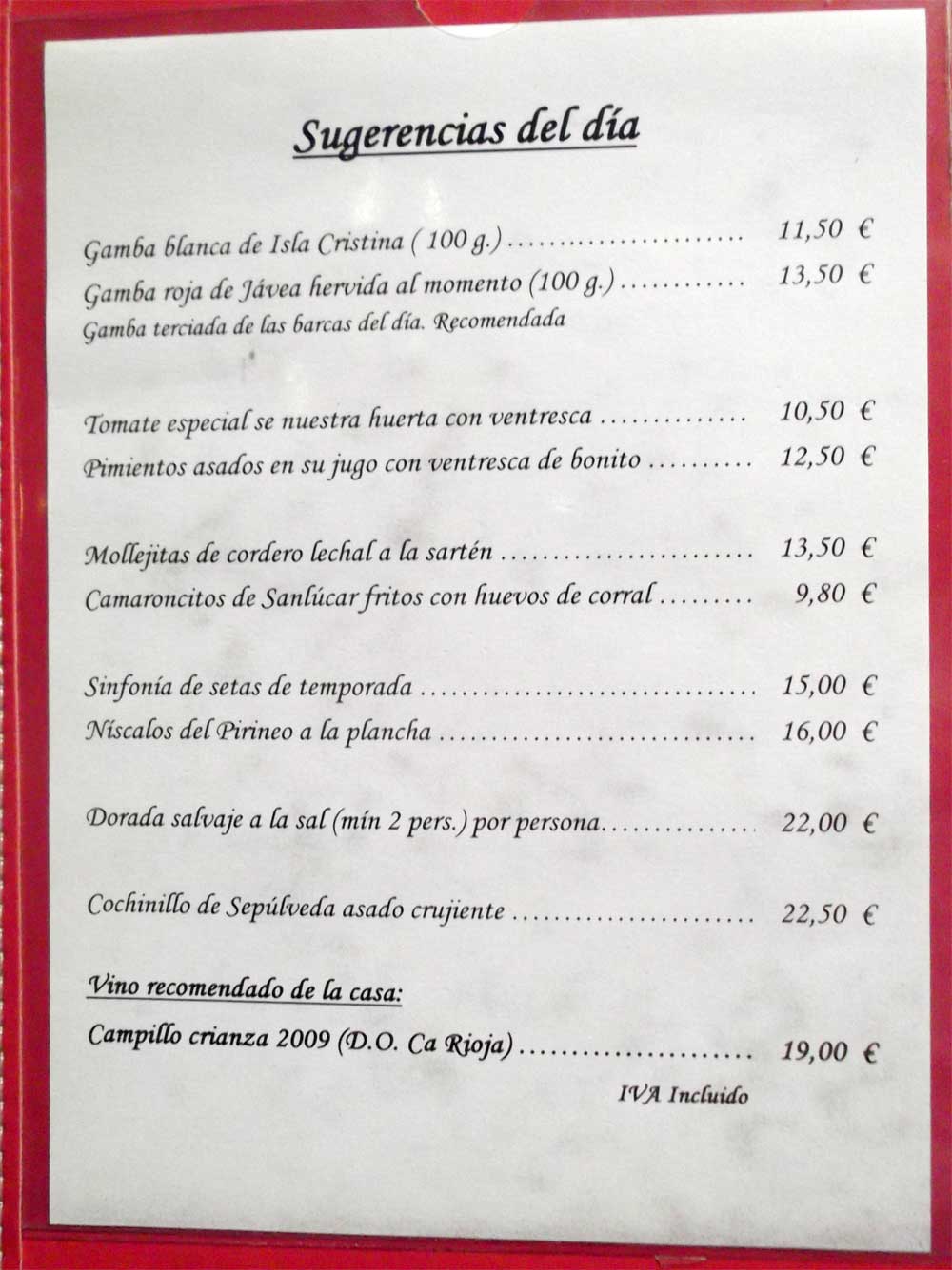 estaba bueno. Nos bebimos una botella, a 24,00 €. El precio aproximado