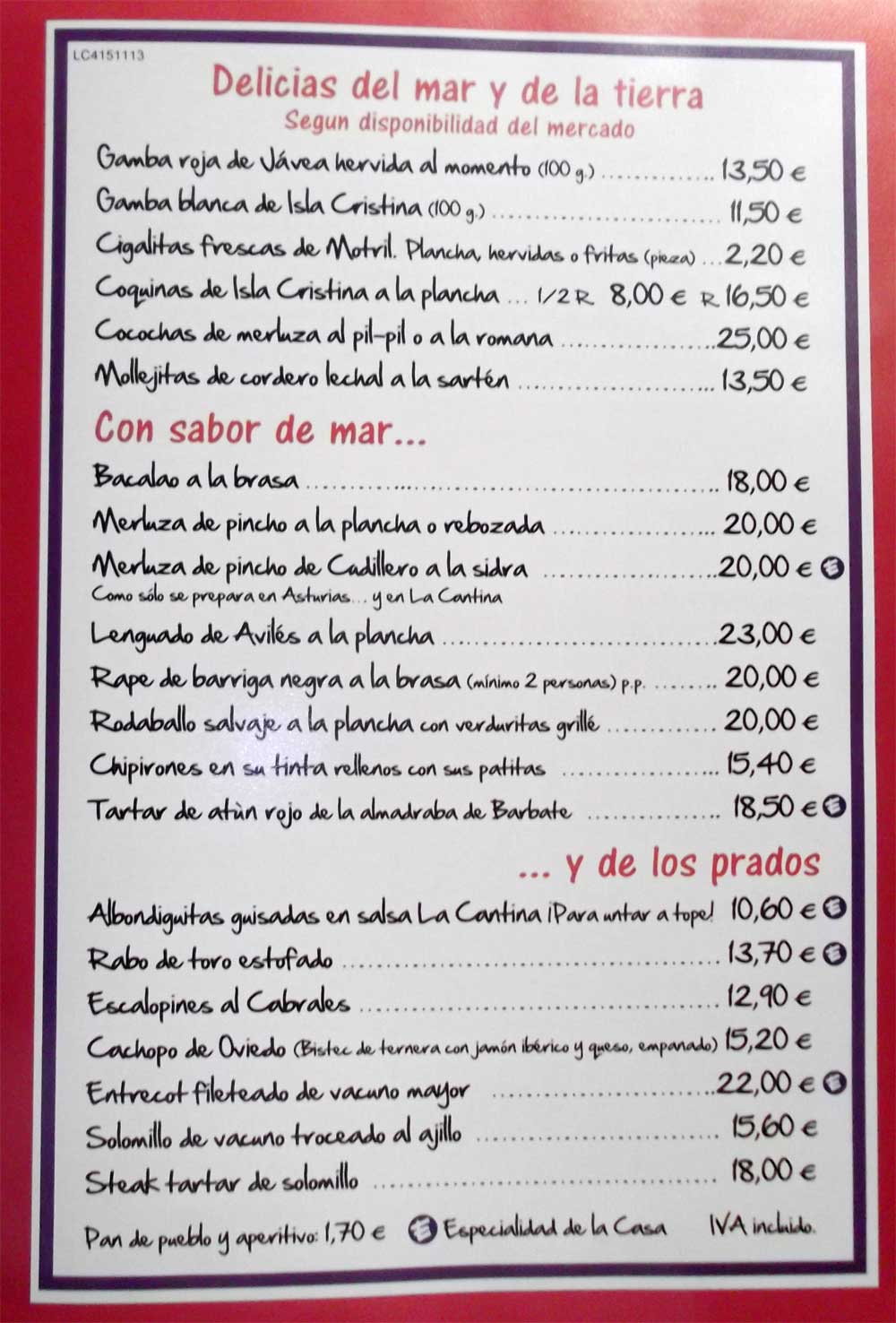 no tenían platos de la carta como cochinillo o costillar.