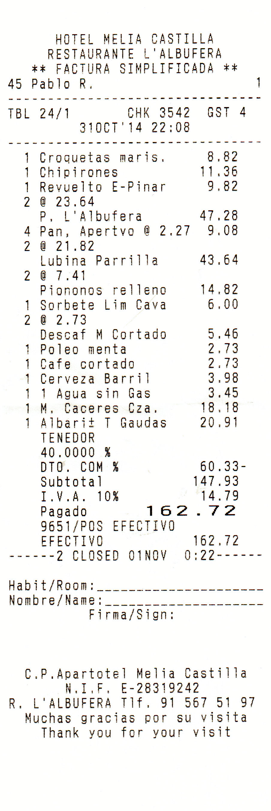 Meliá Castilla. Entonces fue en el restaurante, ya cerrado, "La