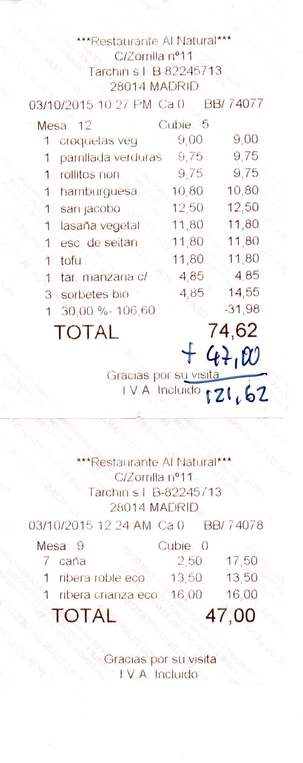 de la factura, la comida hubiera costado 31,31 € por persona.