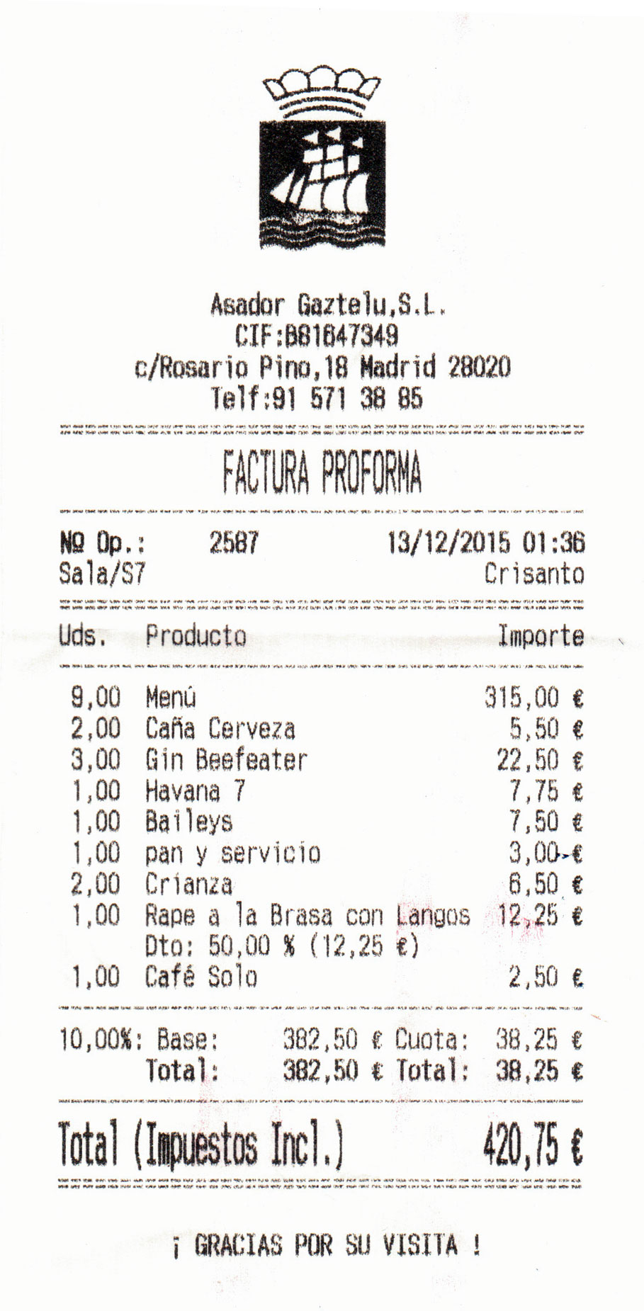 incluido tanto en la carta como en la factura. Se equivocaron y pusieron
