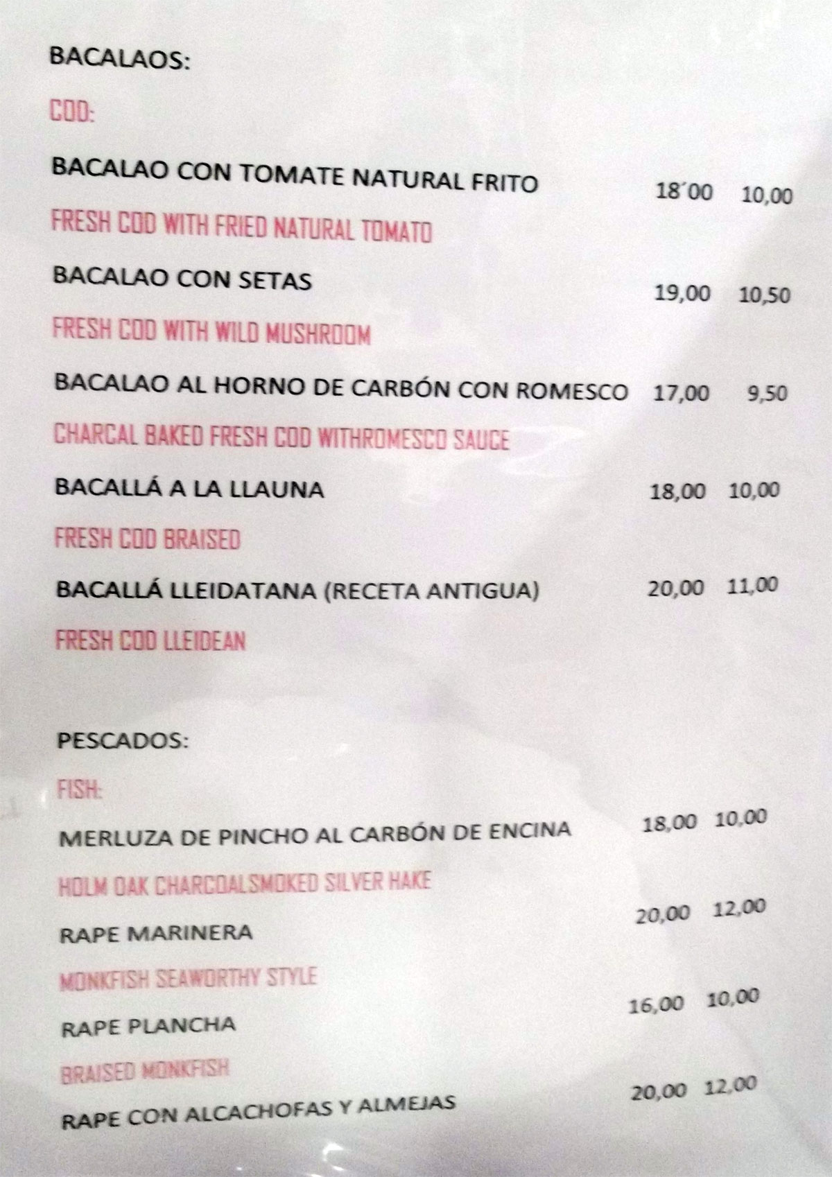 degustando sus exquisitas recetas de bacalao, como bacalao a la leridana