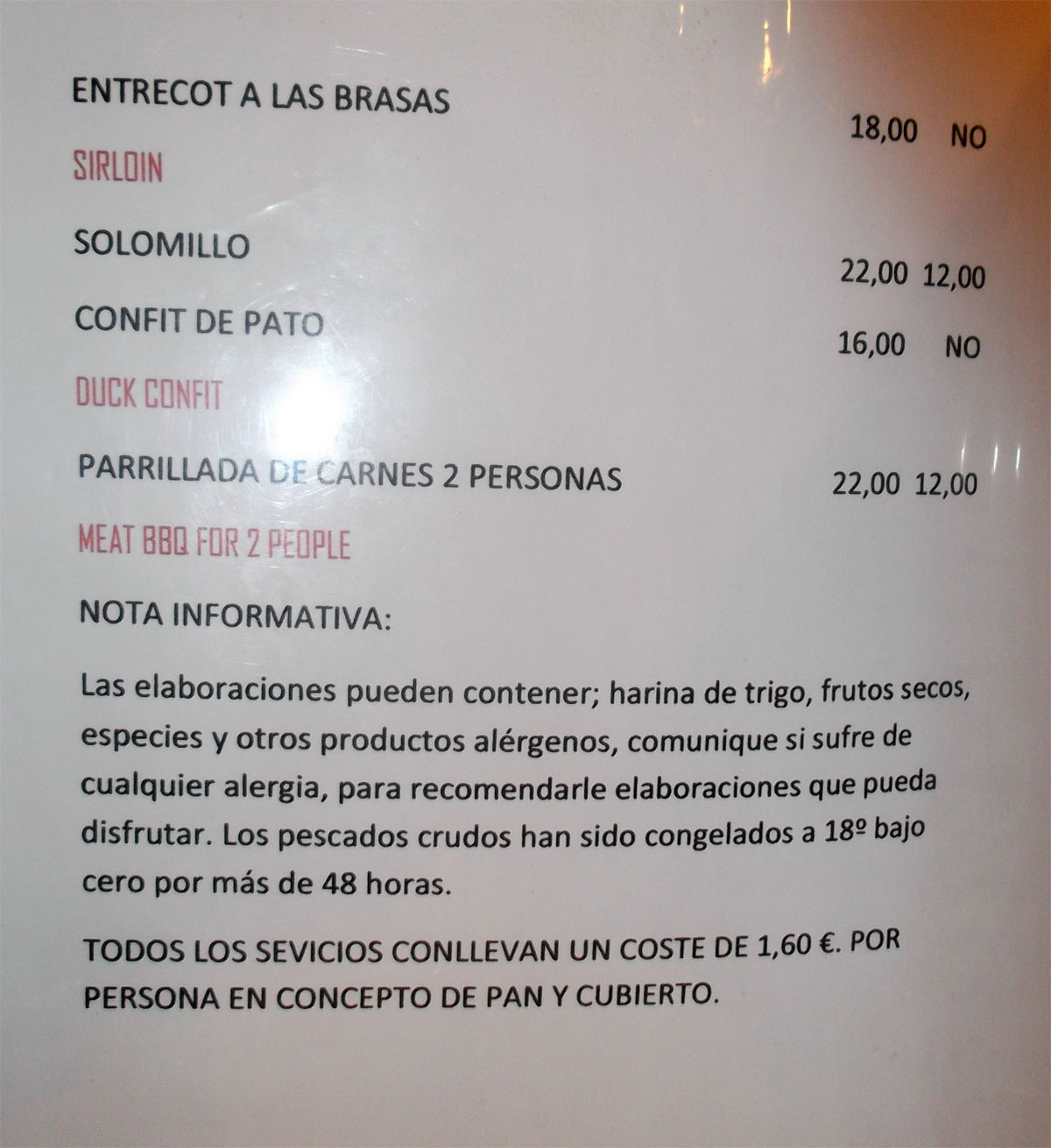 figuraba en mi carta que ni en la web. Se presenta