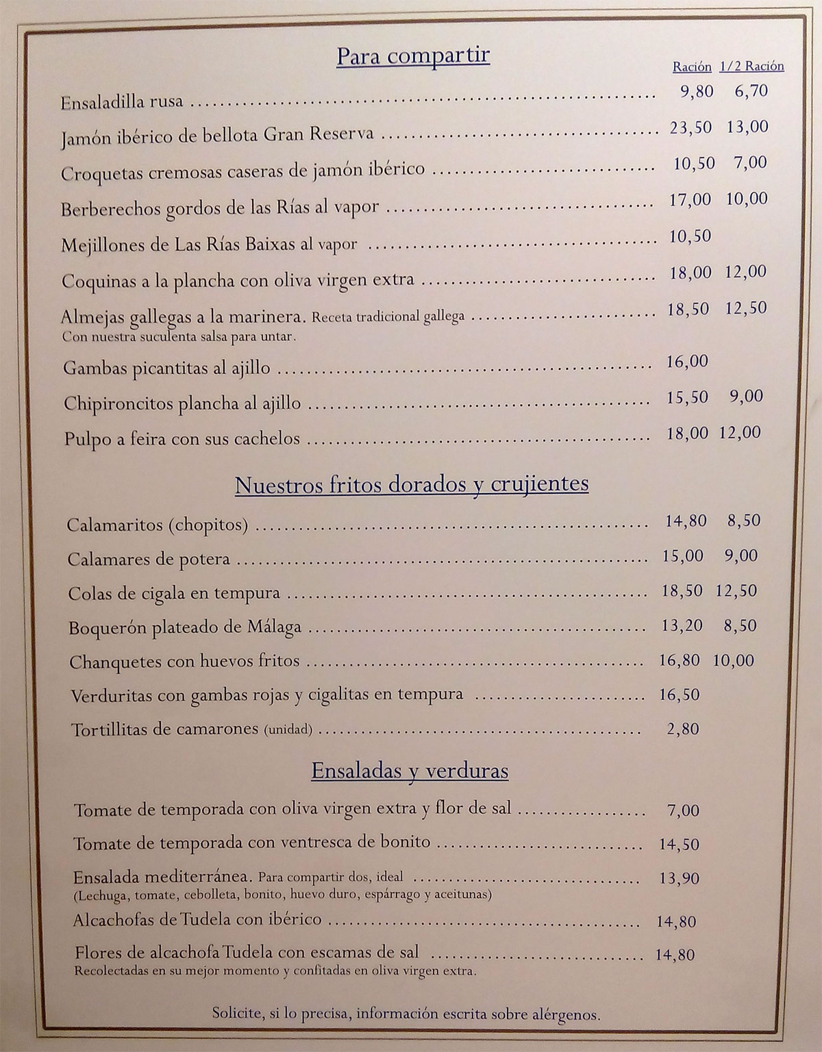 especialidades en formato de medias raciones ideales para compartir."