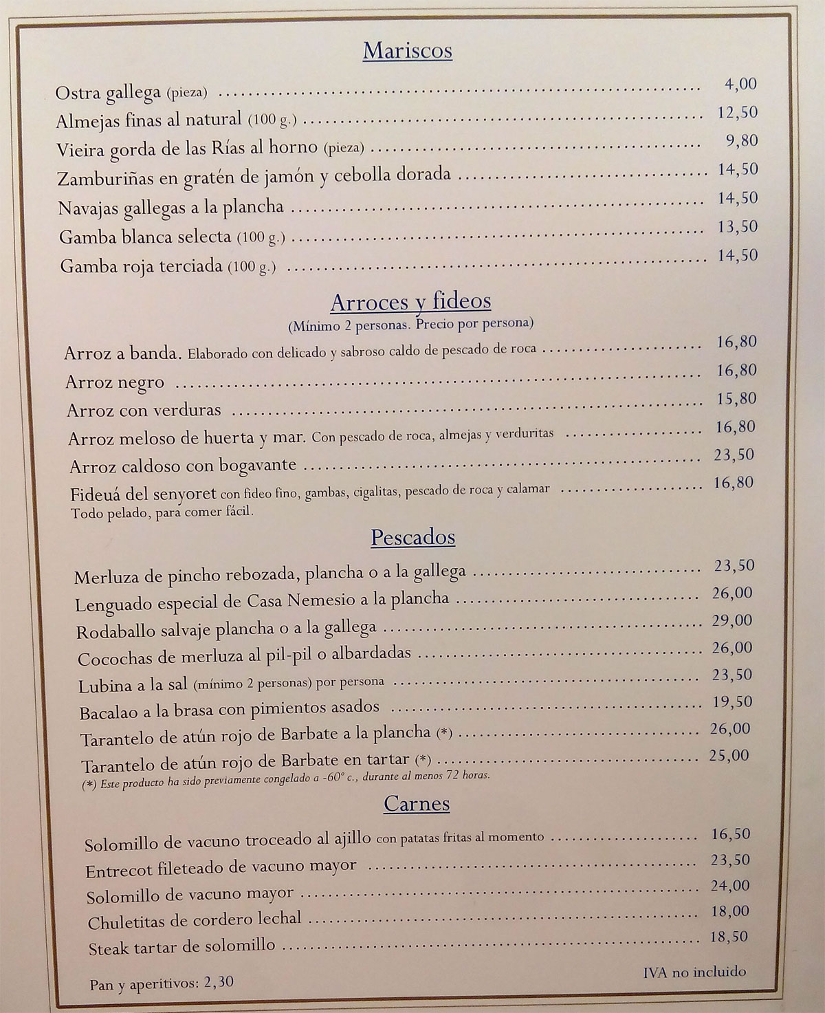 el I.V.A. en los precios de la carta ni en la factura,