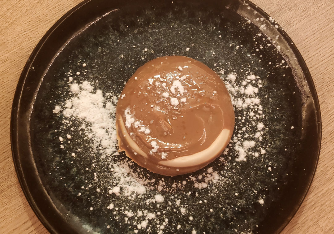 Lo rocían también con azúcar glas. Estaba bueno. Se pidió una