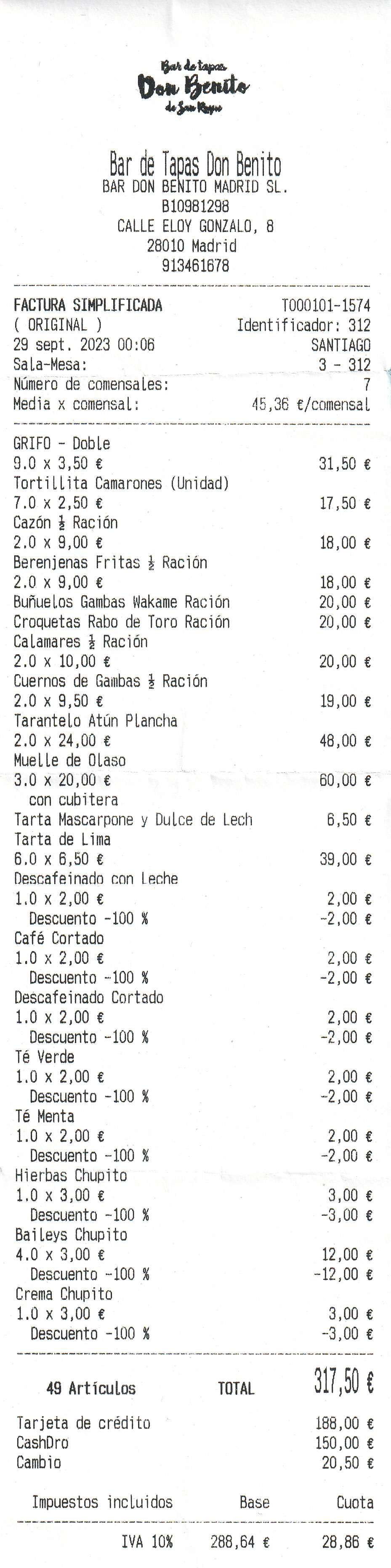 pidieron tres botellas. Estaba bien. Lo cobran a 20,00 €.