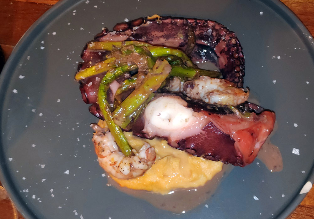 en dos mesas unidas. Fuimos los únicos clientes del local.