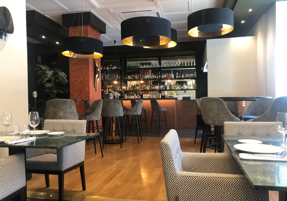 encontramos a la derecha la barra del bar y coctelería