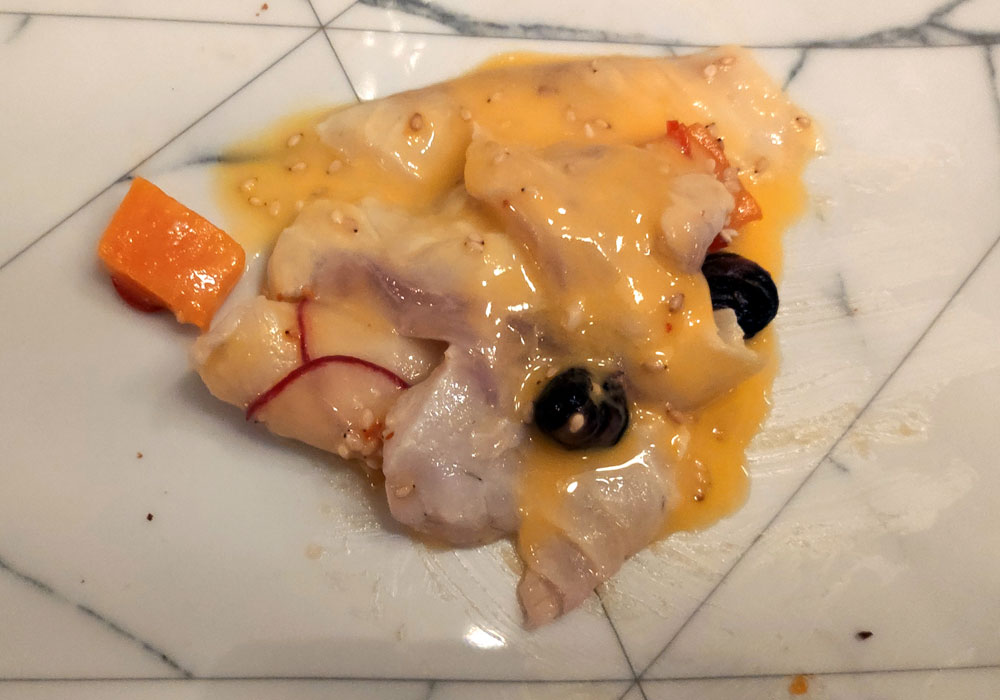 La cabeza del rodaballo la sirven con salsa