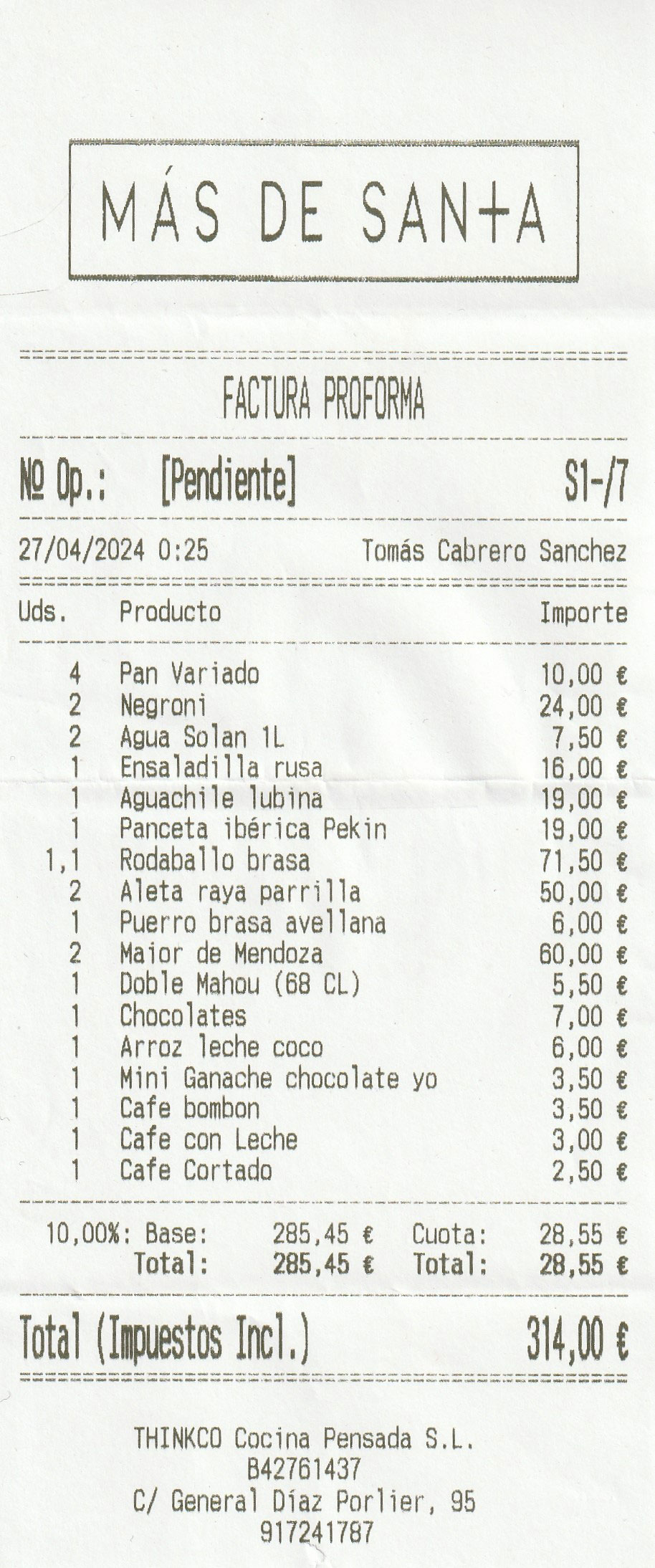 pidió uno a 6,00 €.