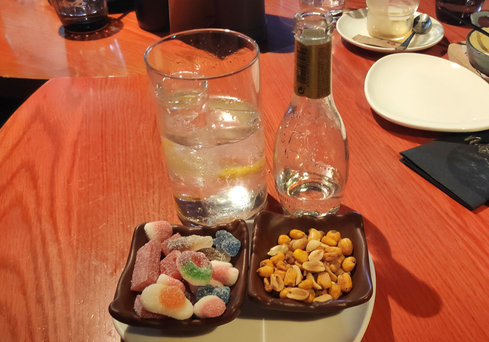 por su aniversario. Pusieron unas gominolas y unos frutos secos para acompañar.